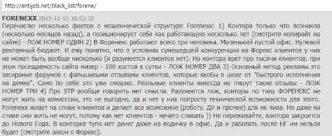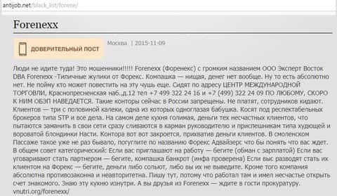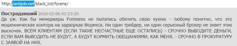 Здесь некий Таболин 86 призывает ни в коем случае не связываться с аферистами конторы Forenexx, которые у него ранее украли прибыль. Удивляться такому развитию событий в ДЦ Forenexx не стоит, потому как имеем дело с явным мошенническим брокером, абсолютно никак не взаимодействующим с международным межбанковским рынком - все ихние торги являются обычной игрой в казино.