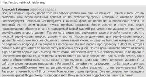 На публикации идущей далее предлагаю Вам ознакомится с комментом о брокере Forenexx, где один из пострадавших клиентов сего онлайн-лохотрона заявляет о том, что он потерял там как миниму 5 тысяч американских долларов. Случился с ним весь этот кошмар из мира Форекс, после того как он воспользовался советом сотрудника компании Forenexx, который конечно же преследовал лишь одну цель - быстрейший слив депо трейдера. Как мы видим, что-то все-таки осталось у человека на торговом счете, но думаю никто не сомневается в том, что аферисты в лице брокера Форенекс предпримут все возможное, дабы некий Алекс так и не получил свою выплату.