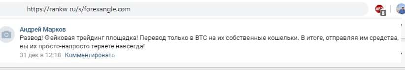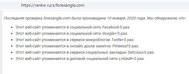 Официальный сайт брокерской компании ForexAngle Com не пользуется популярностью и в социальных сетях
