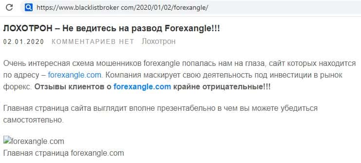 Клиенты ForexAngle, по мнению сайта blacklistbroker com, отзываются об этом брокере крайне отрицательно