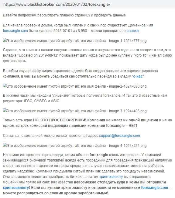 - Мошенники из компании ForexAngle обманули множество трейдеров еще раньше, работая под другими именами
