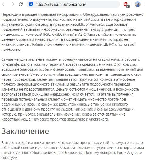 - Интернет-портал infoscam ru выразил сомнения в достоверности информации, размещаемой на сайте ForexAngle Com