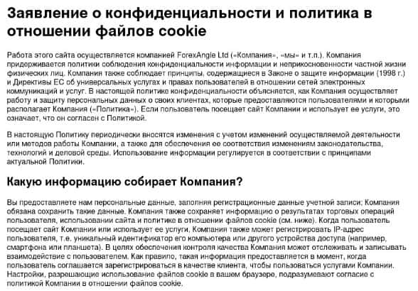 - Политика конфиденциальности брокерской компании ForexAngle Ltd