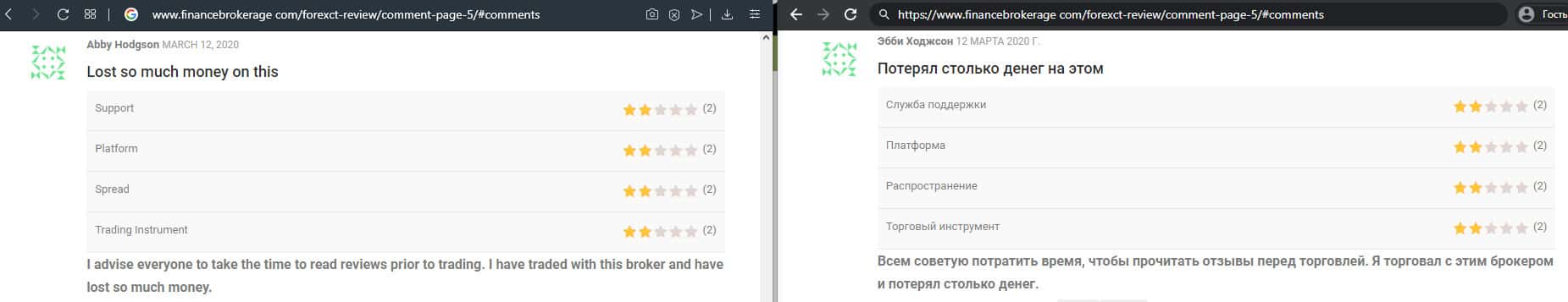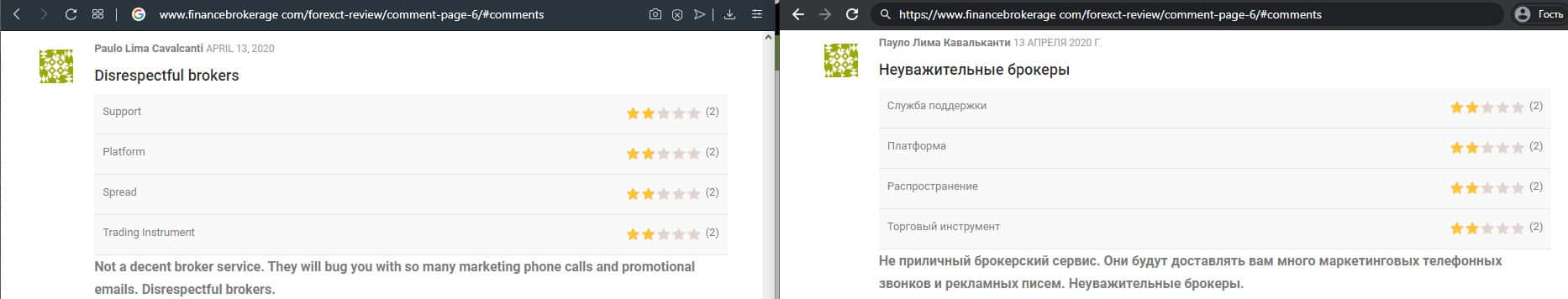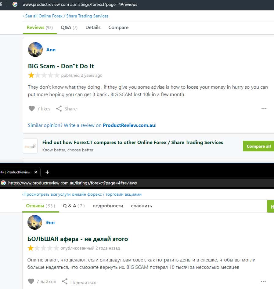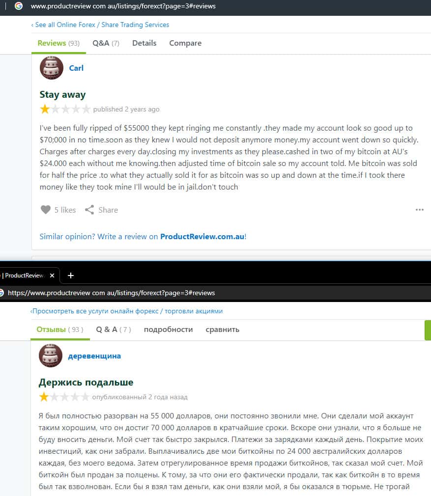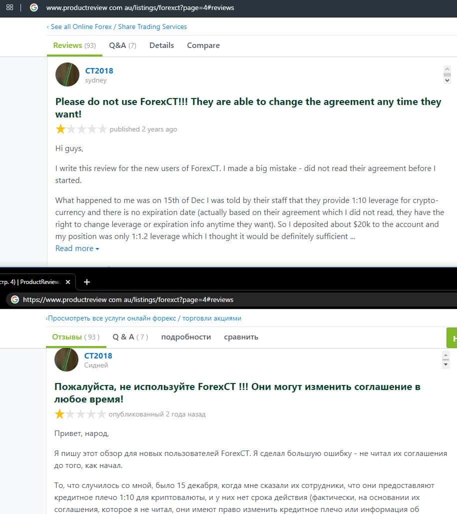 Клиент предупреждает не связываться с шарагой ForexCT