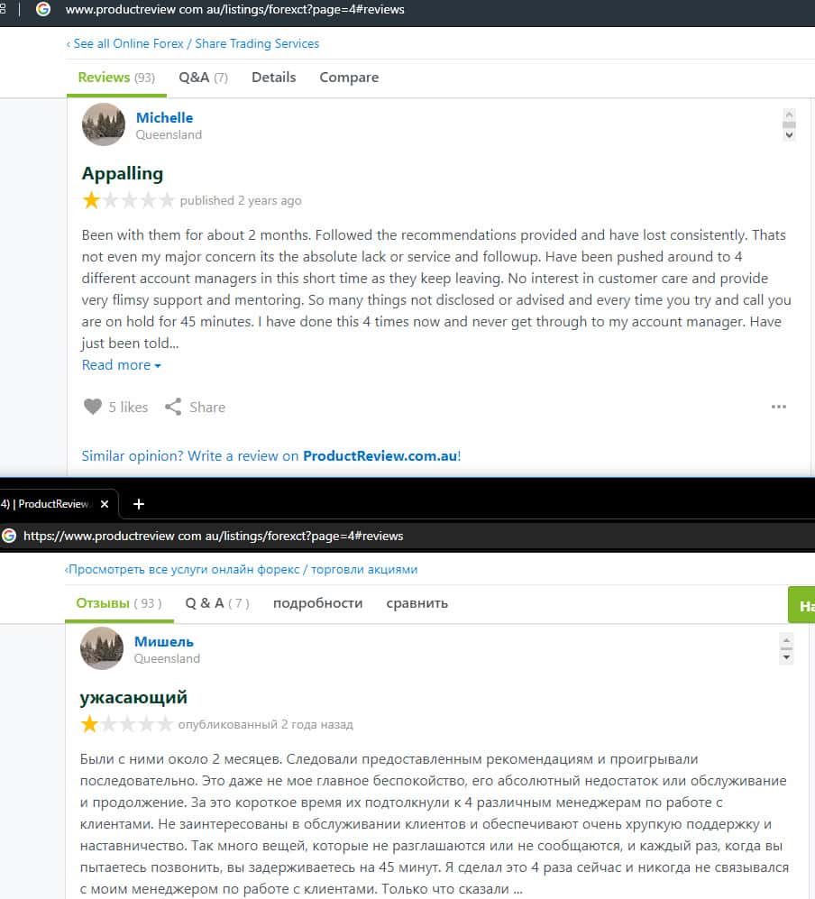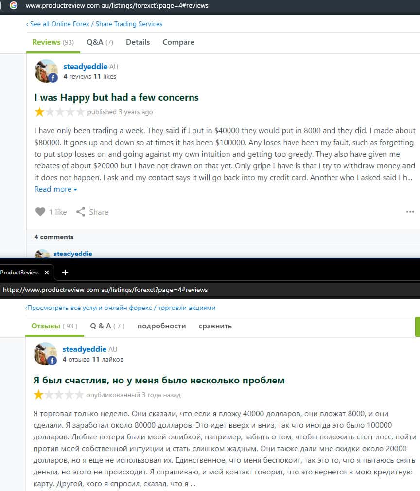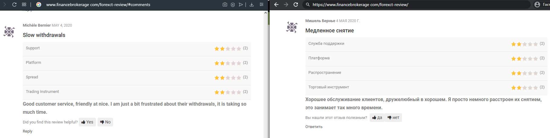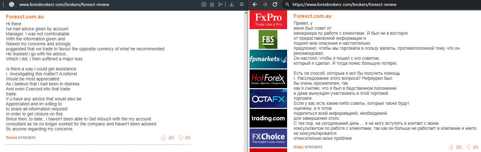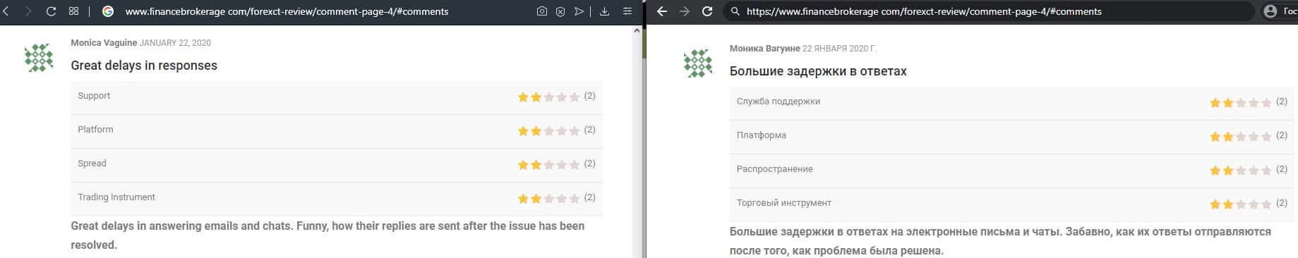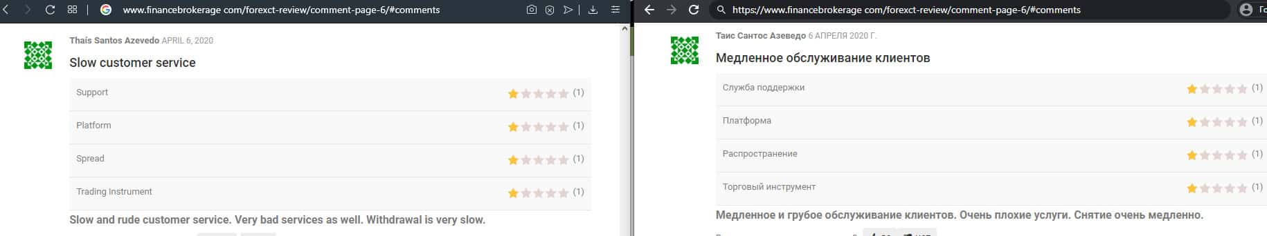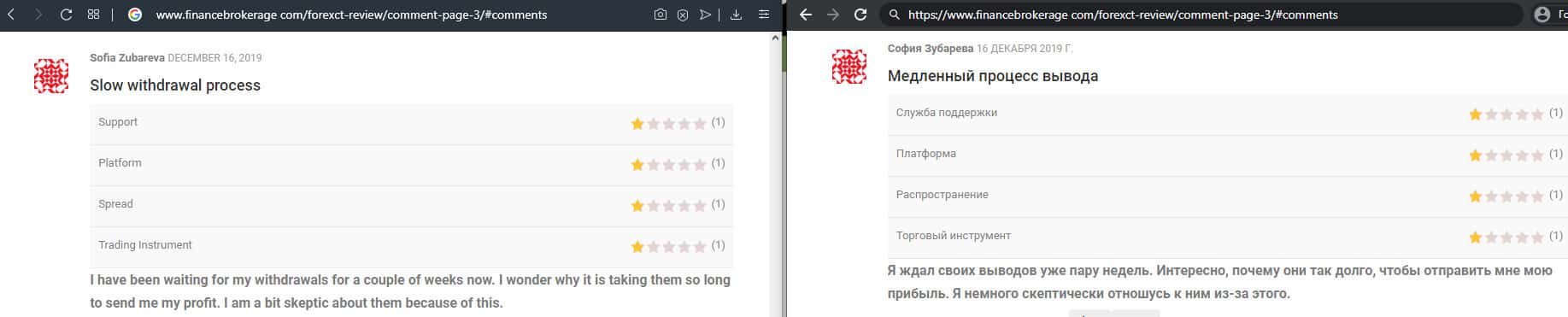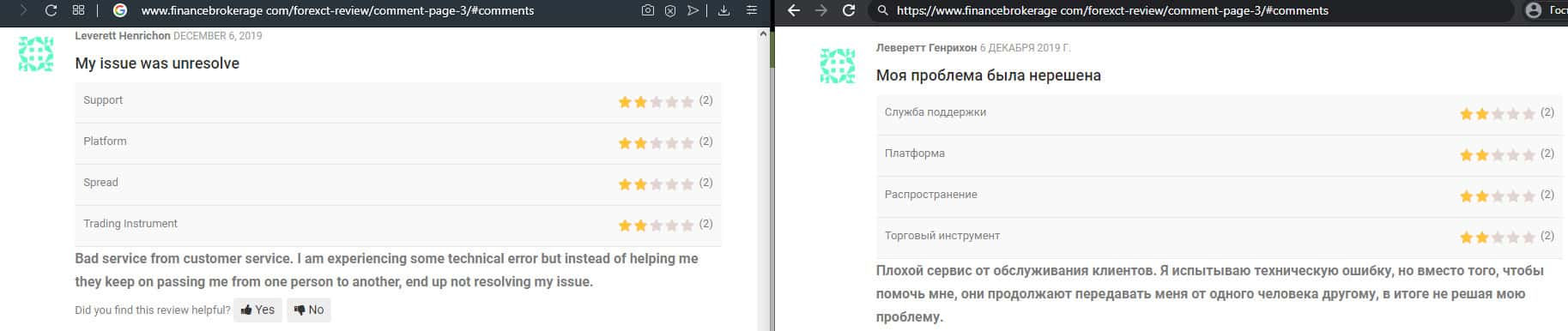 Далее представлен отзыв от одного трейдера, который пытался разобраться в тех услугах, которые предлагает мошенническая организация ForexCT. Шарлатаны указывают, что они могут решить любую проблему за считанные минуты, но по факту не отвечают клиентам по несколько дней и это одна из основных проблем.