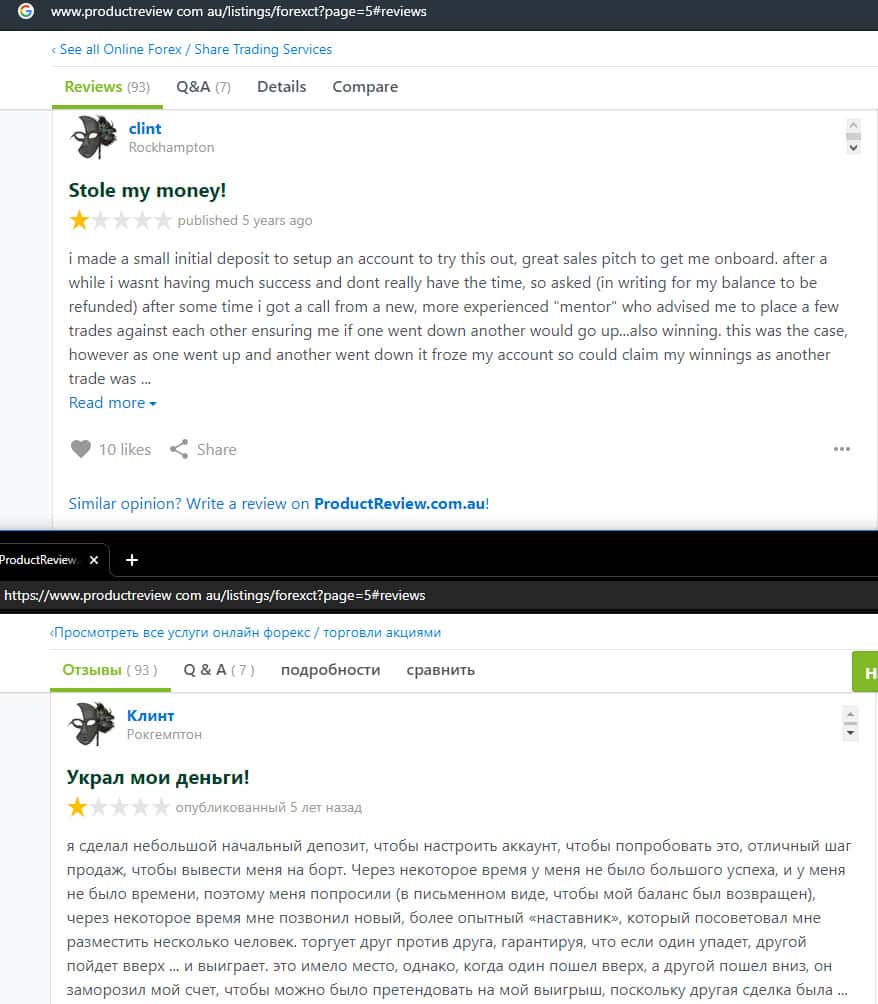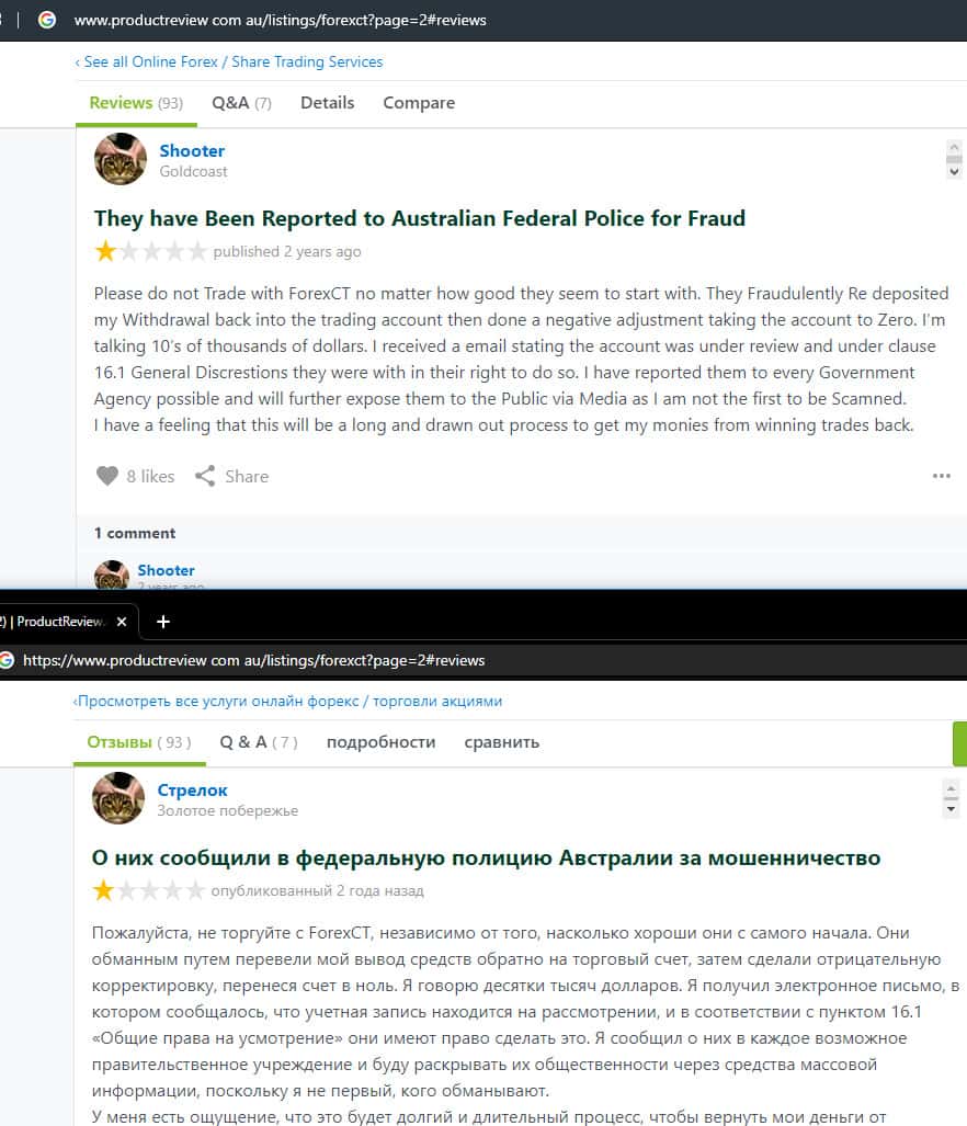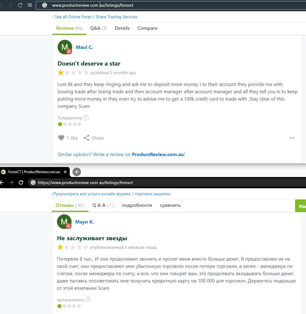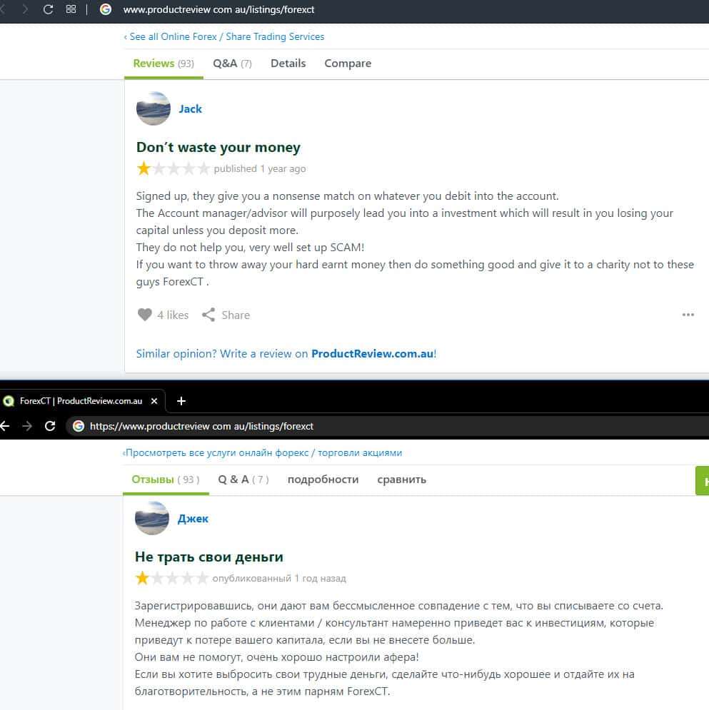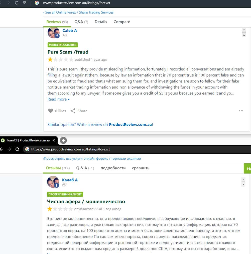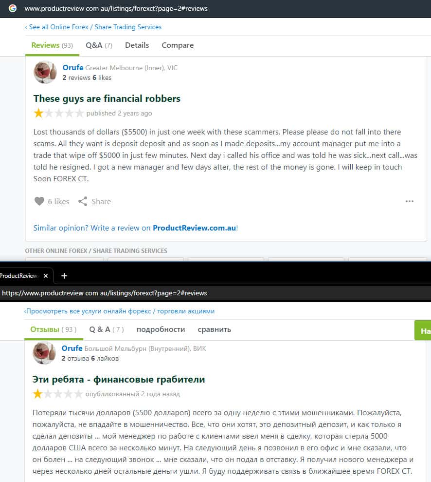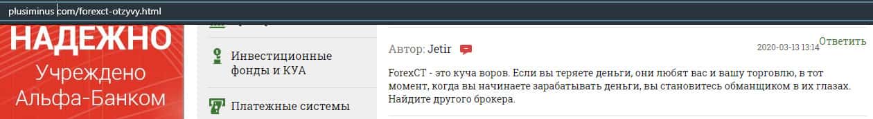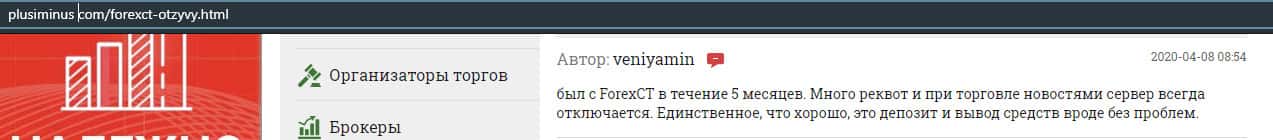 - Негативный отзыв о работе мошенников ForexCT