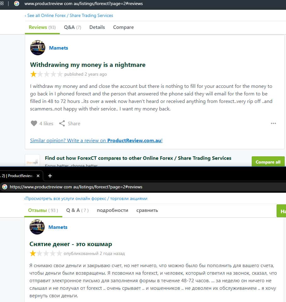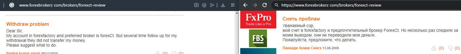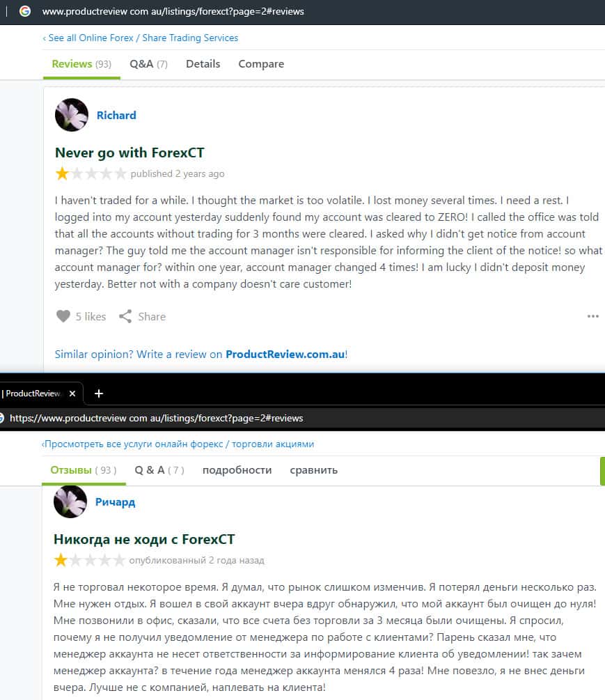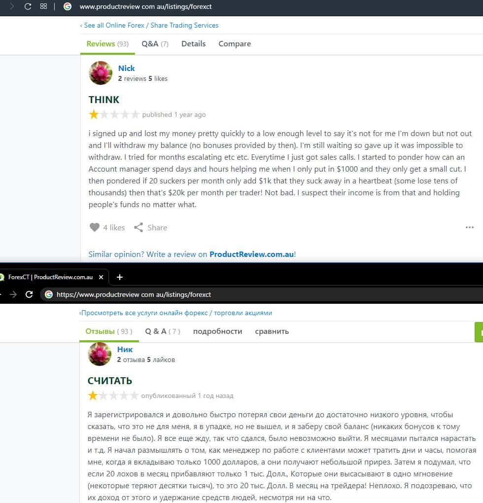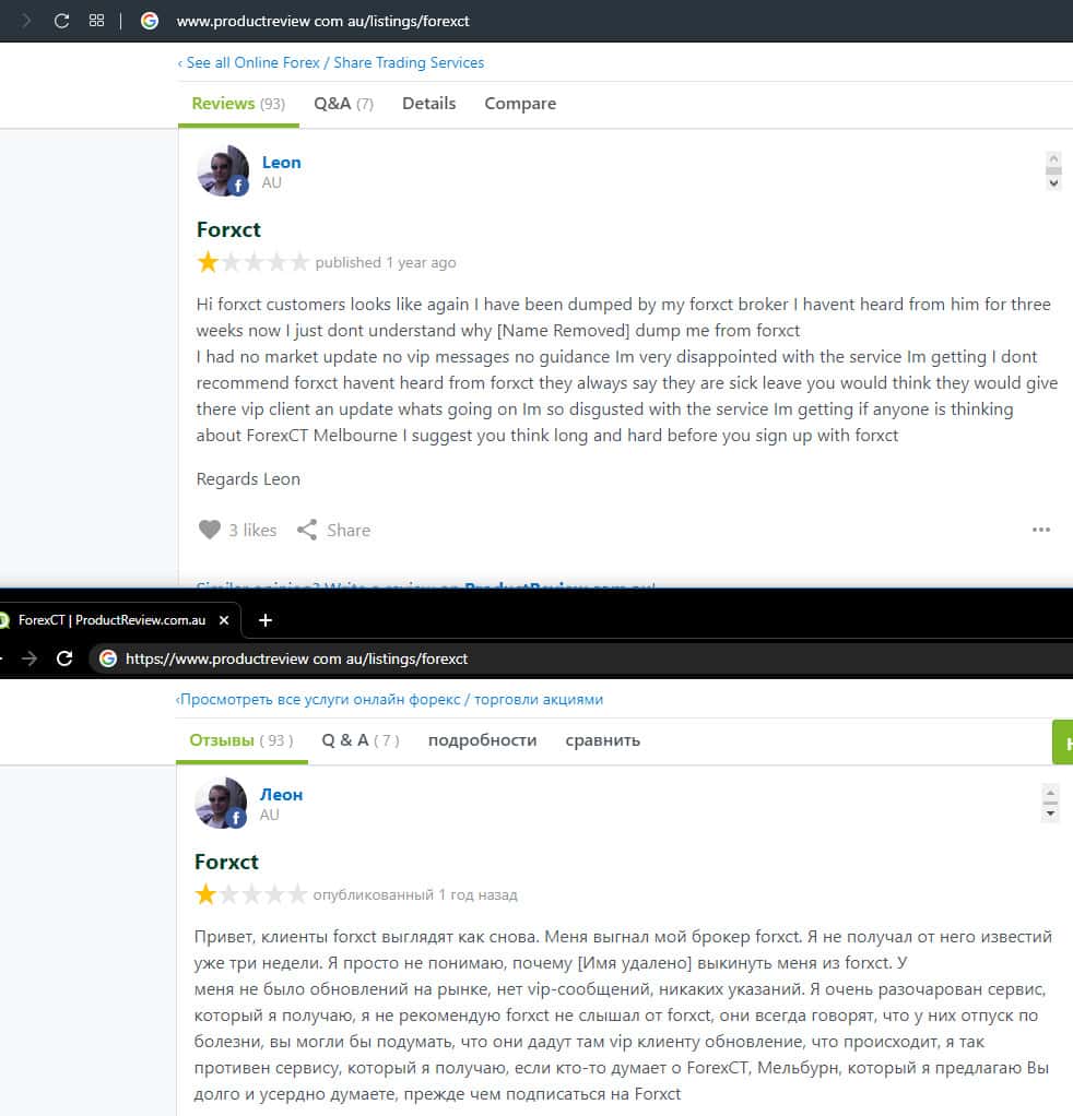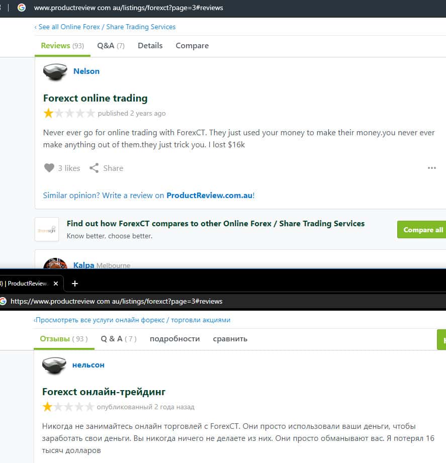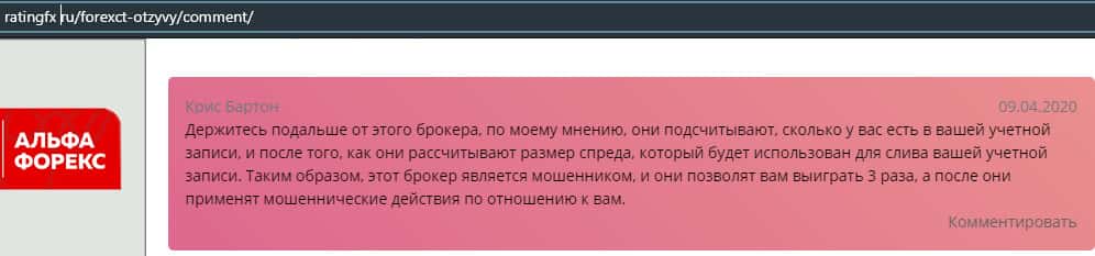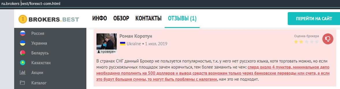 - Негативный отзыв о работе мошенников ForexCT