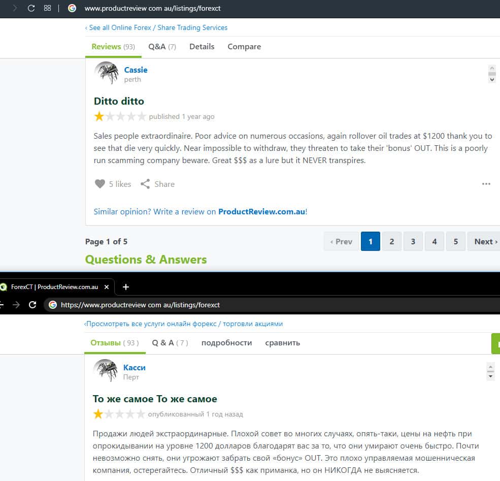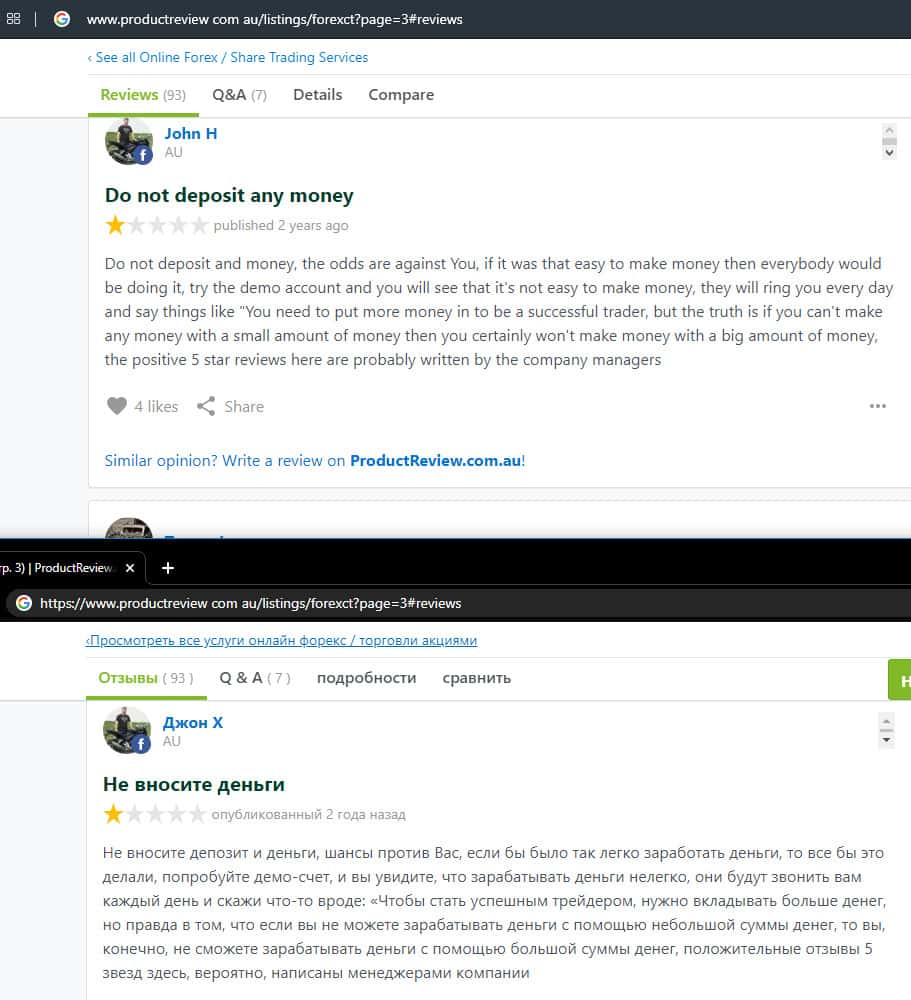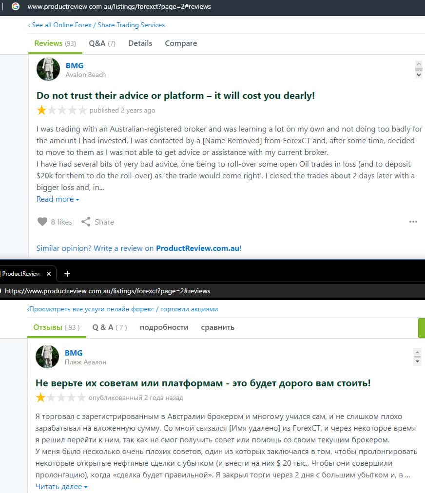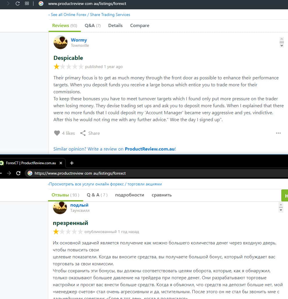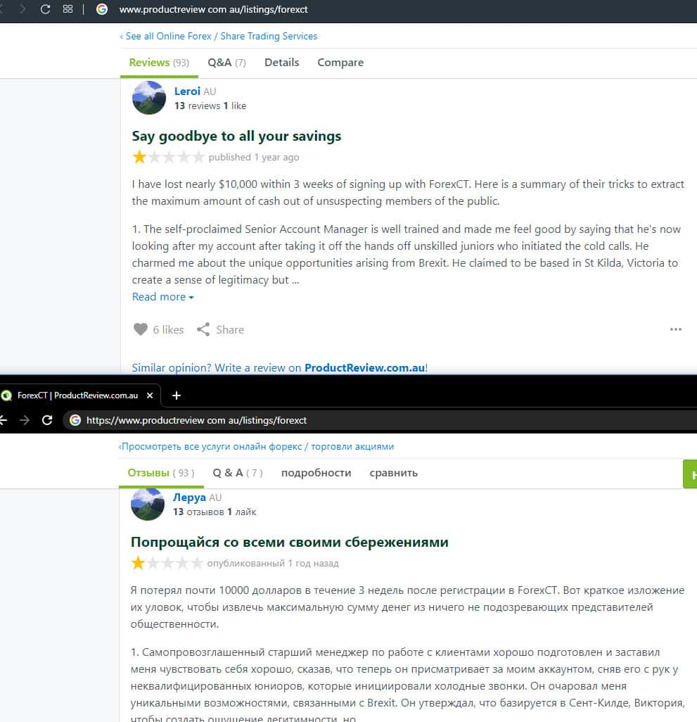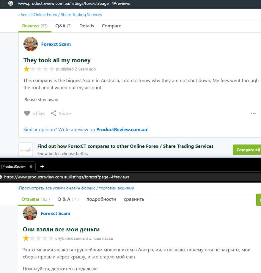 - Негативный отзыв о работе мошенников ForexCT