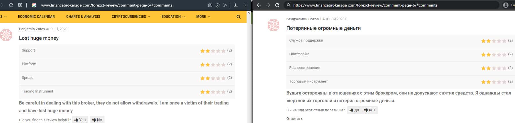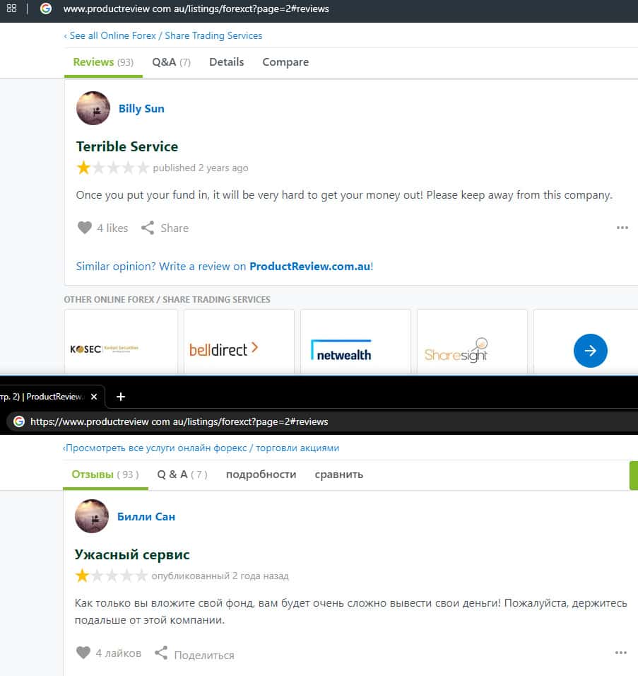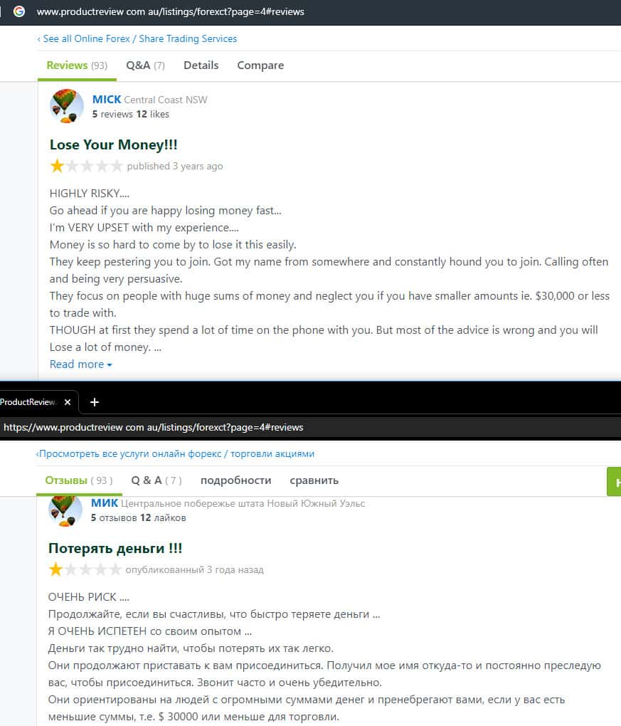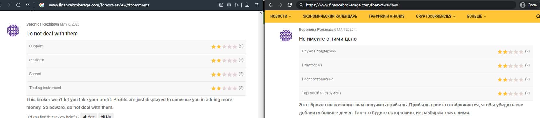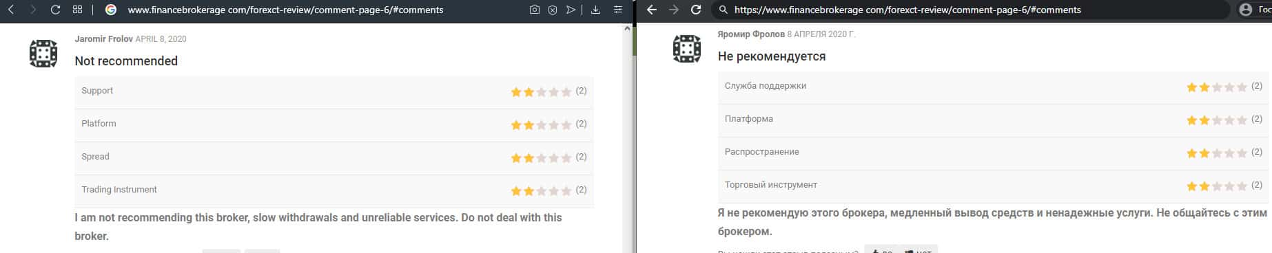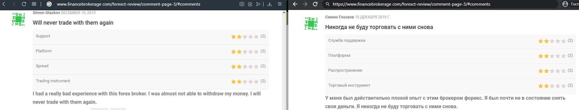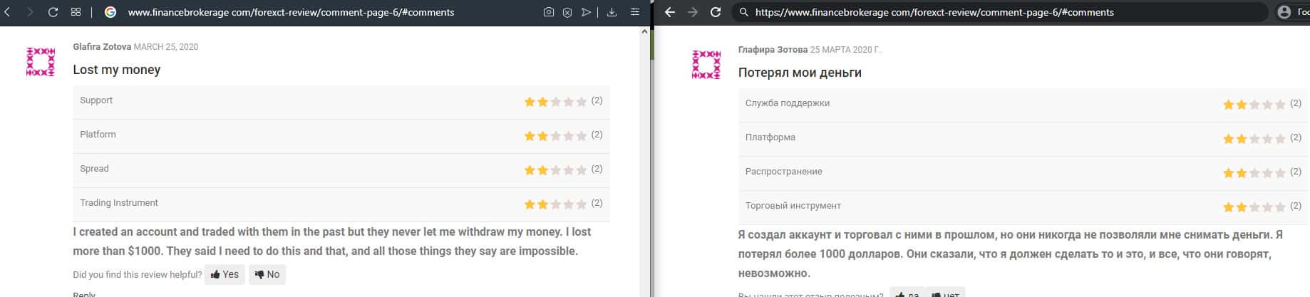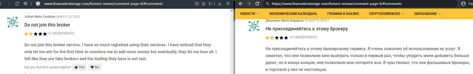 - Негативный отзыв о работе мошенников ForexCT