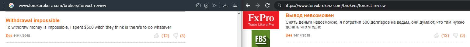 - Плохой опыт работы с аферой ForexCT