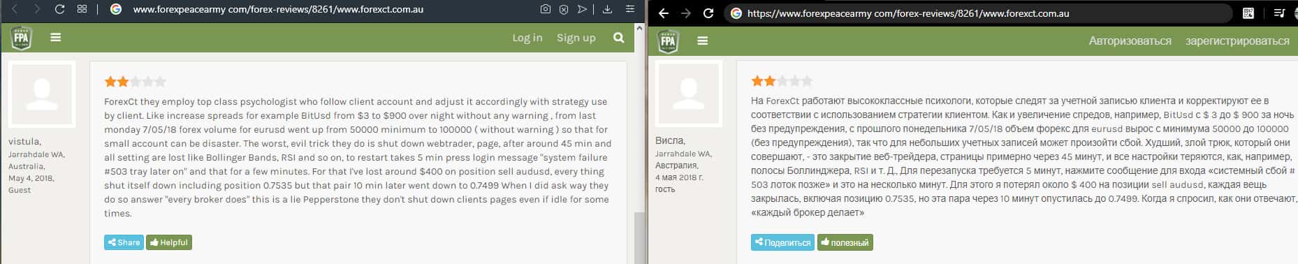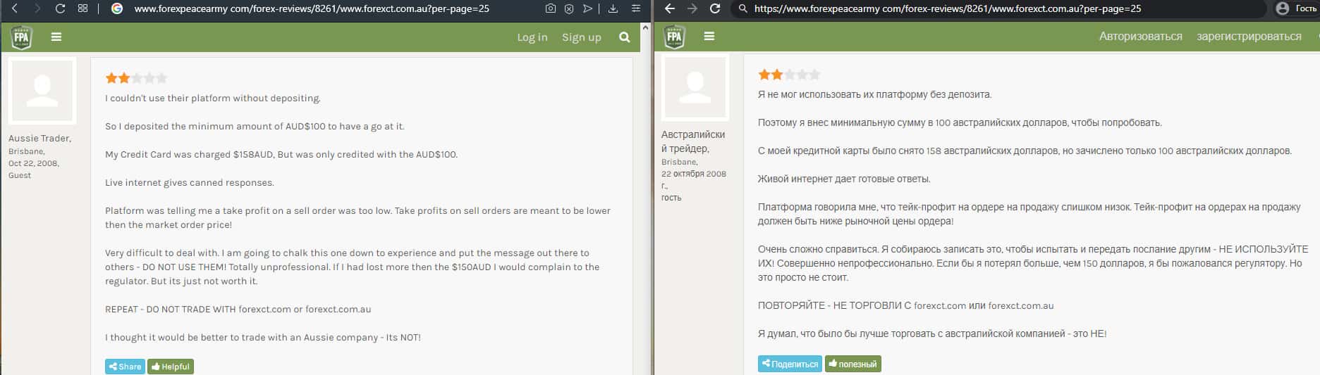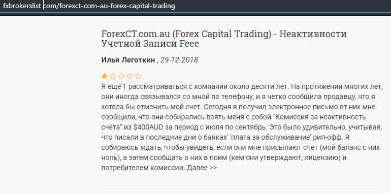 - Аферисты ForexCT сняли с клиента 400 австралийских доллара за не активность счета