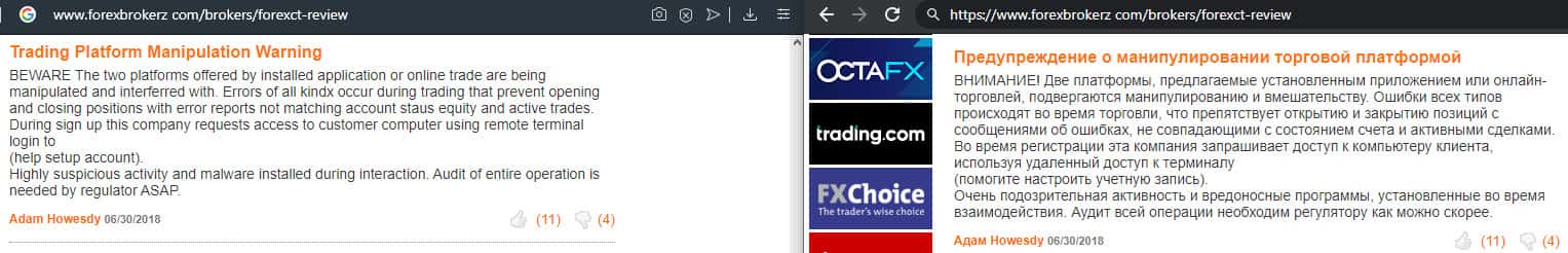 - В кухне ForexCT манипулируют торговой платформой