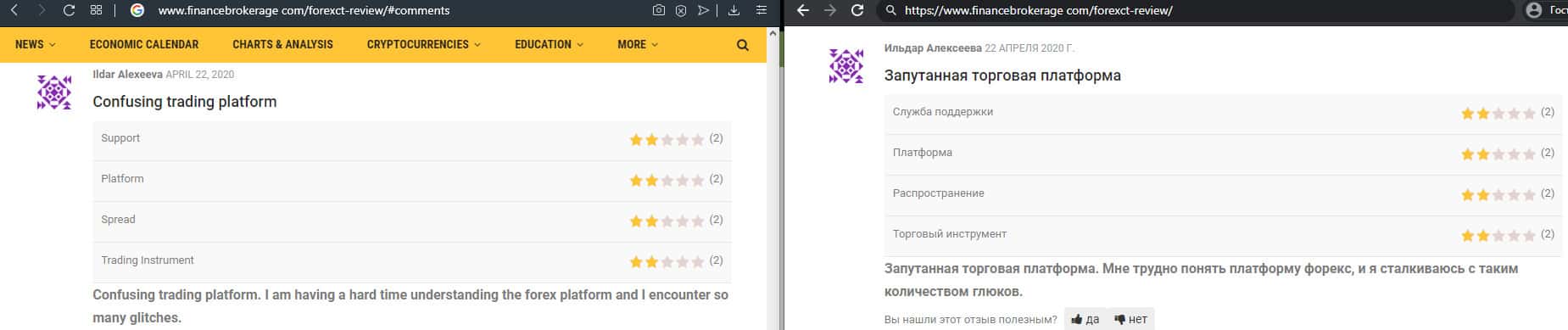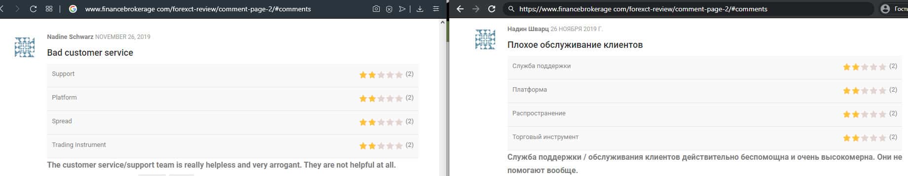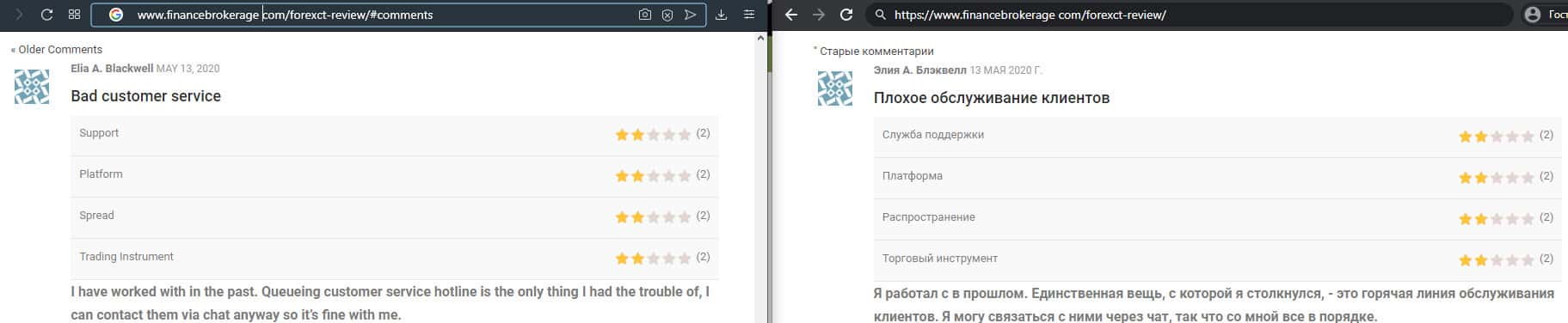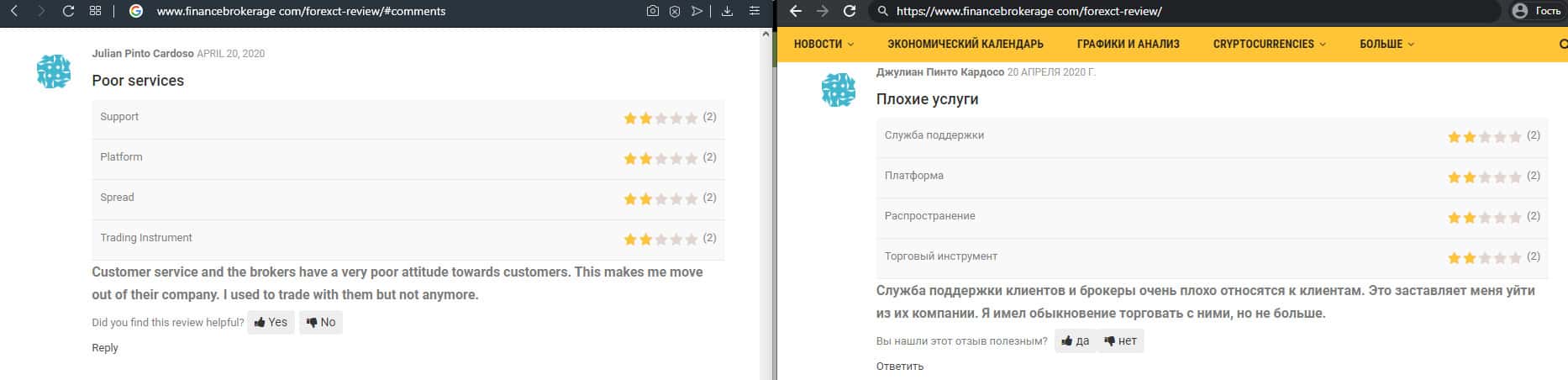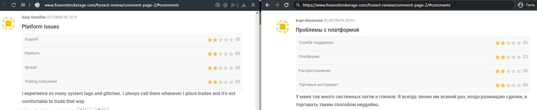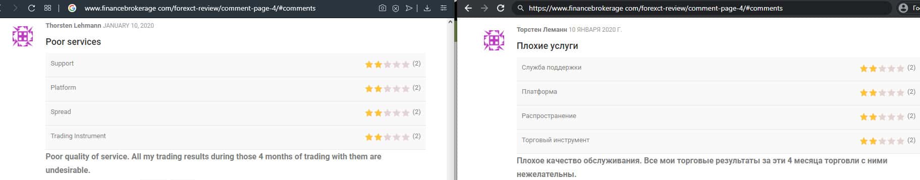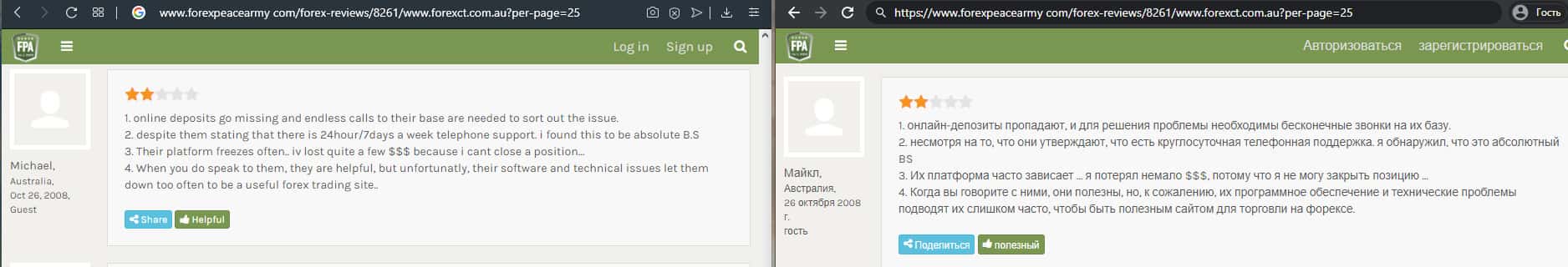 - Служба поддержки ForexCT не решает технические проблемы в торговле