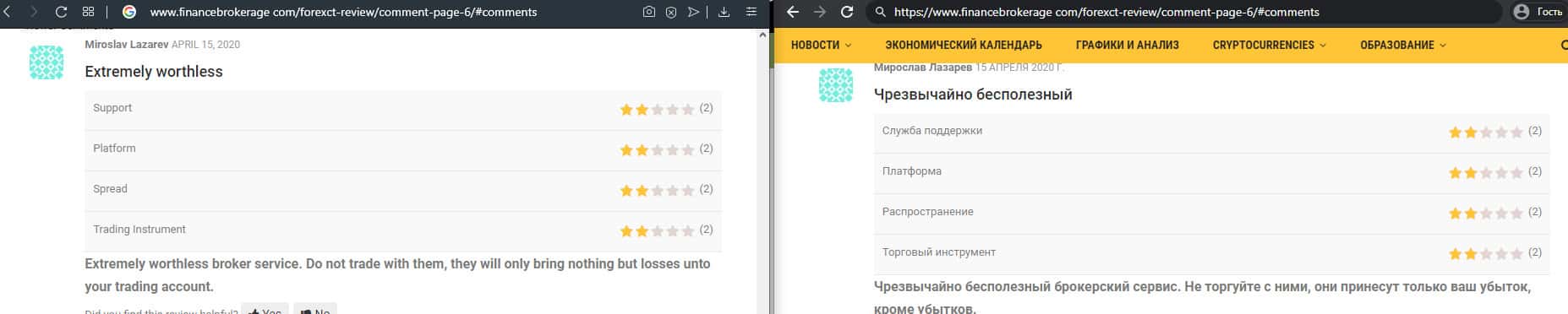 Человек рассказал, как он участвовал в акции от брокерской конторы ForexCT и ее на тот момент проводили менеджеры, которые постоянно названивали. После окончания бонусной программы все списали, хотя он до этого вложил своих денег, да еще и заработал сверху. Жертва позвонила в службу поддержки и там сказали, что бонусы он не отработал.