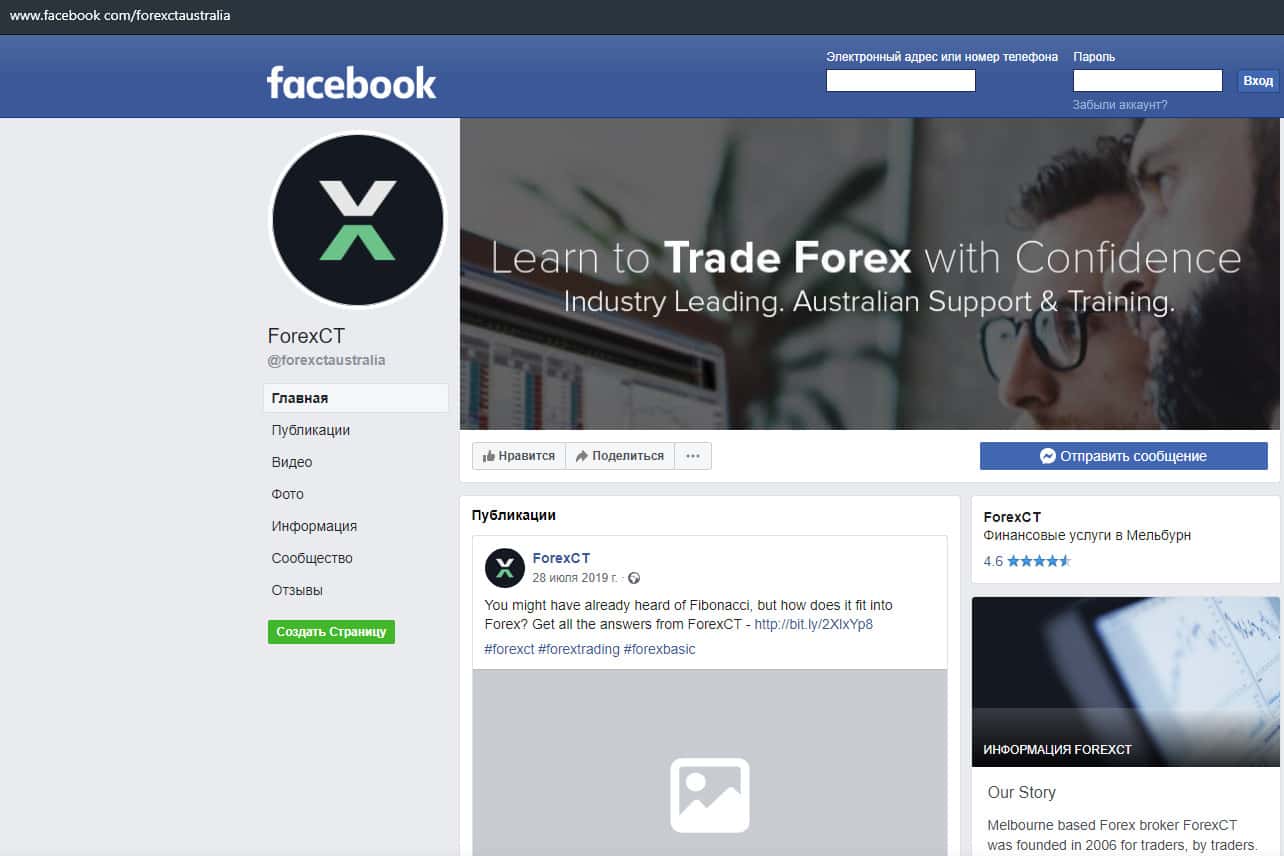 Группа в Фейсбуке также присутствует в распоряжении конторы ForexCT, так как они обрабатывали клиентуру именно с помощью нее. За все время работы они собрали около 12 000 подписчиков, большая половина из которых это накручены боты, либо просто подписавшиеся. Соответственно статистика на сайте липовая. Ссылка на группу facebook com/forexctaustralia