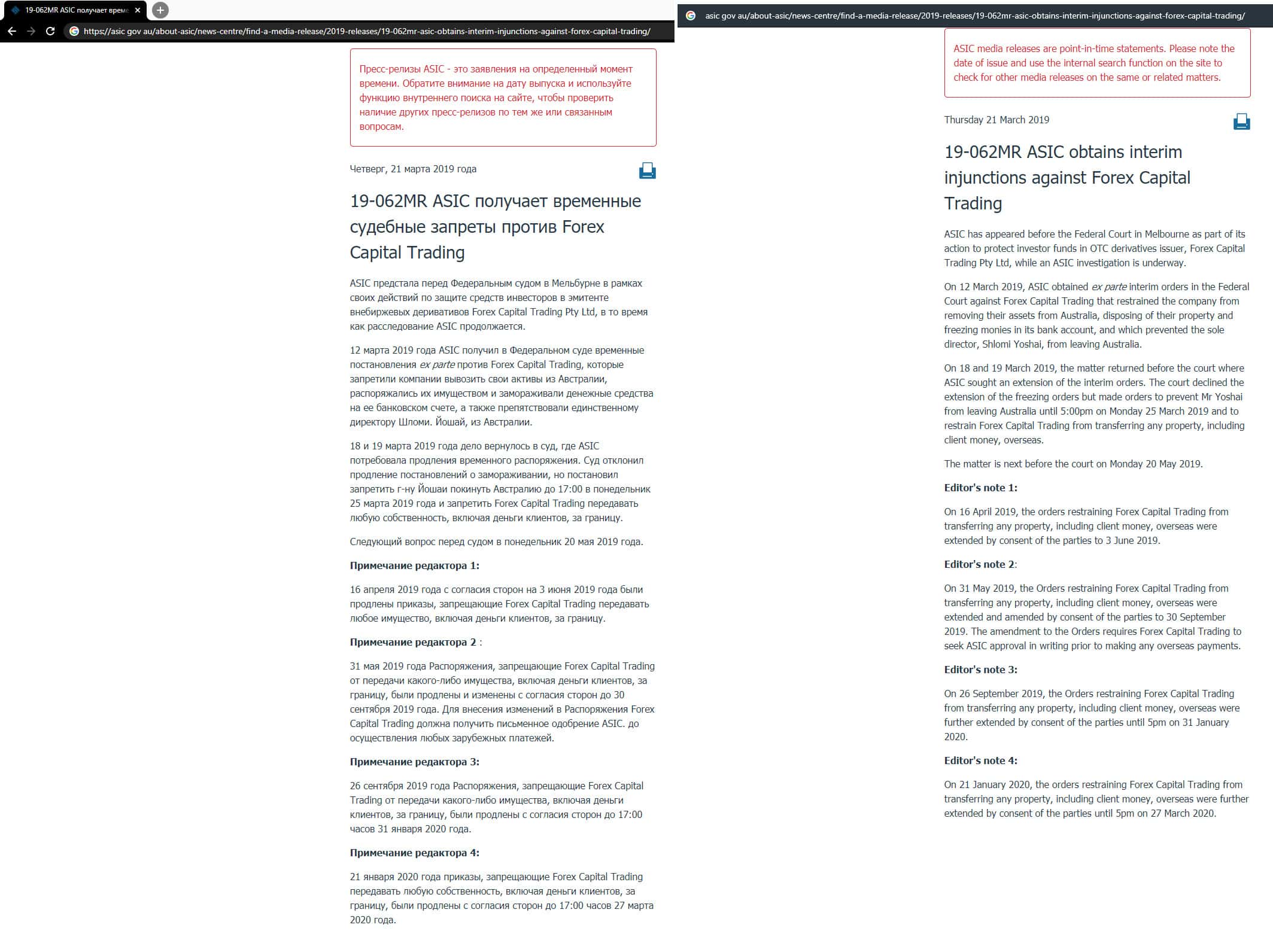 Лучше бы они не писали о регуляторе, так как мы нашли на сайте организации новость, где описывается, как контора ForexCT, она же там выступает как Forex Capital Trading, получила судебные запреты исходя из которых должна прекратить свою деятельность. Поэтому остается только предупредить всех об этом, дабы люди выводили скорее все свои деньги.