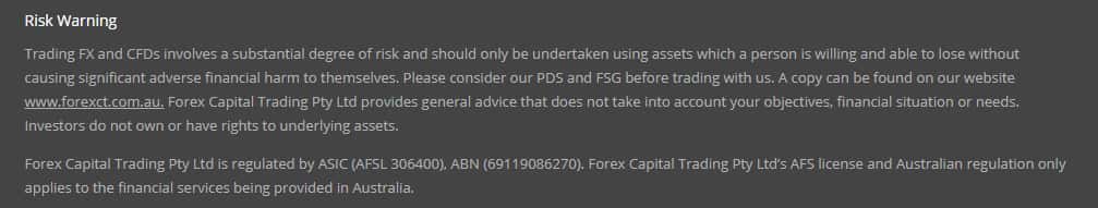 Мошенническая контора ForexCT, исходя из информации на своем сайте, регулируется австралийским регулятором ASIC, при чем даже указывают номера лицензии. Но реального подтверждения на своем ресурсе они не опубликовали, поэтому стоит отметить, что можно только догадываться правда это или нет.
