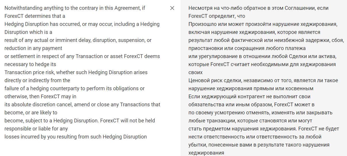Также они могут определить нарушение хеджирование позиции со стороны клиента. Если клиент при этом теряет деньги и там и там, то во всем виноват он сам. Шарлатанская организация ForexCT только то и дело что будет делать, как искать отмазку, лишь бы до них не докопался регулятор.