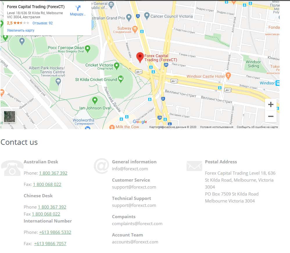 - другие электронные почты complaints@forexct com и accounts@forexct com