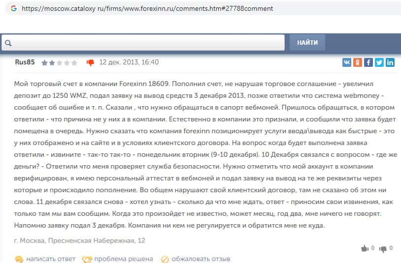 - Мнение других интернет ресурсов о слившихся жуликах ForexInn