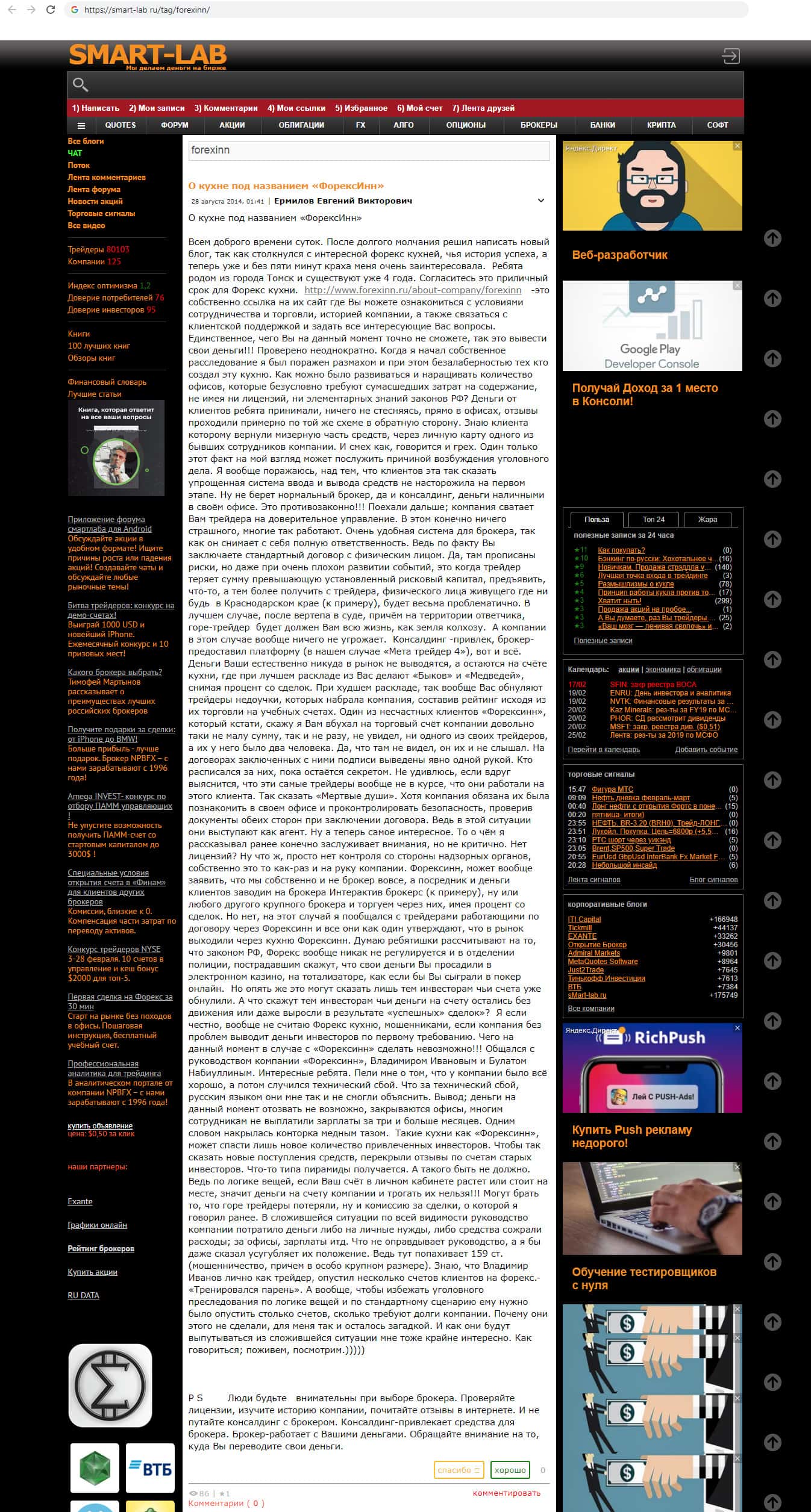 - Автор статьи о слившемся псевдоброкере ForexInn