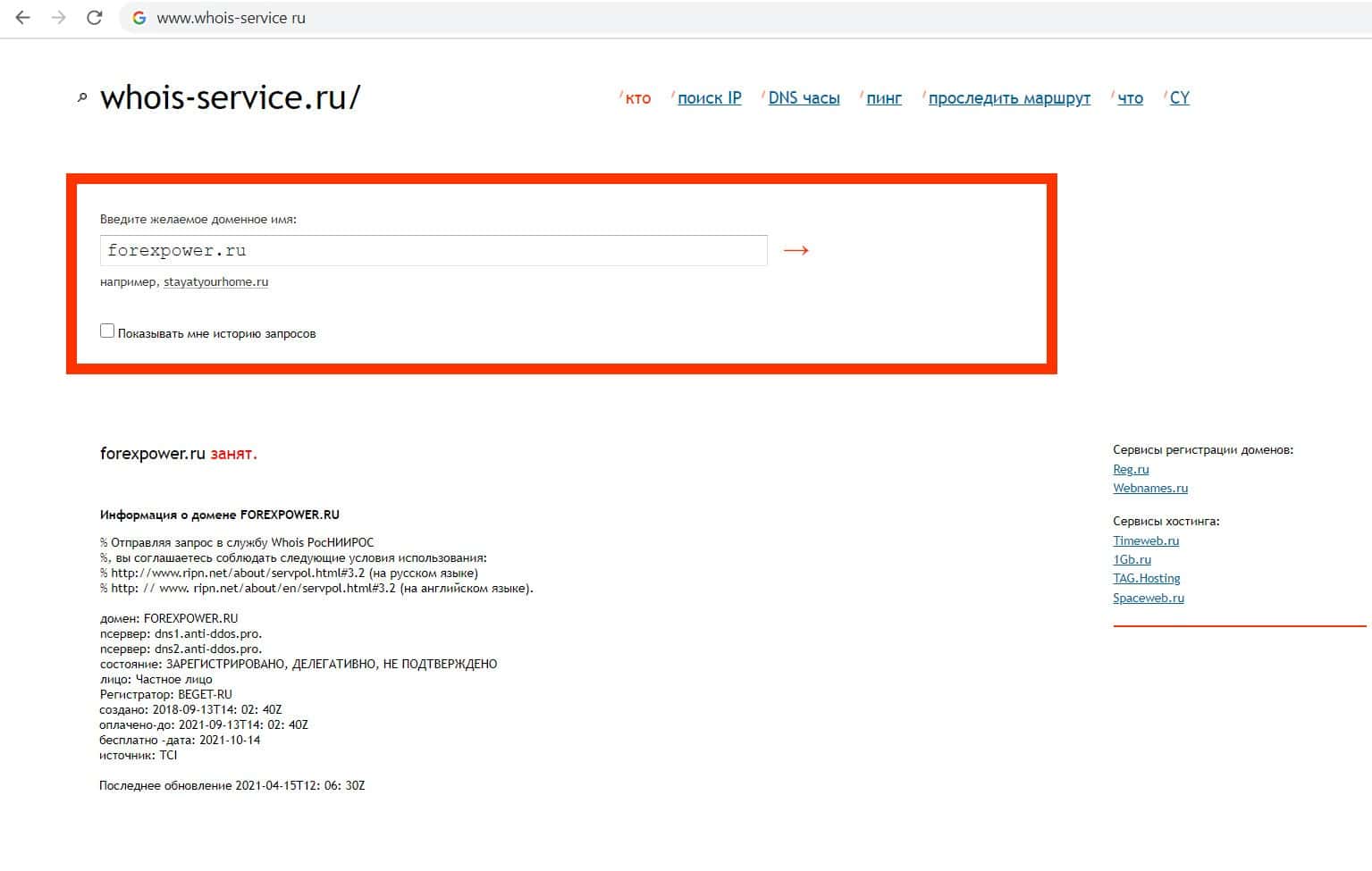 whois-service ru - сайт для проверки владельца домена