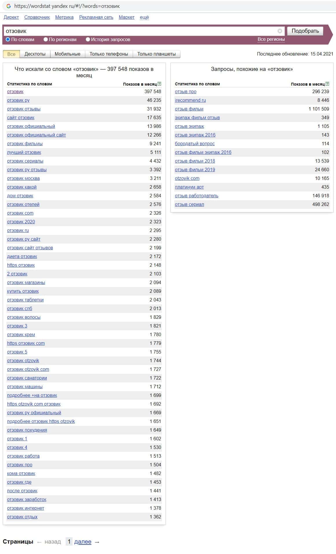 wordstat yandex ru - количество брендовых запросов в Яндексе
