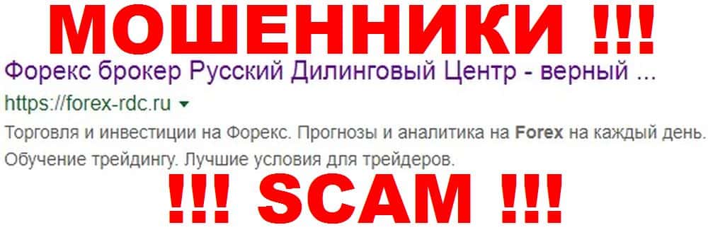 Русский Дилинговый Центр - лохотрон, который якобы предлагает трейдерам консалтинговые и информационные услуги, а так же платформы для торговли. Кидалы разводят новичков, которые ничего не понимают в форекс-кухне, предлагая им обучение. Выдоив максимум денег из жертв, кидалы сливают их брокерам-мошенникам.