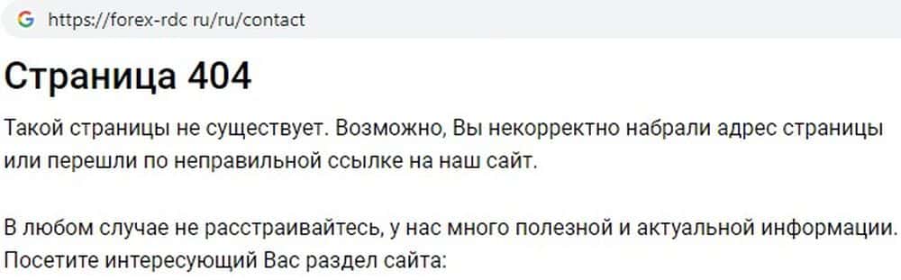 На сайте кидал Русский Дилинговый Центр есть форма обратной связи и раздел контактов. Но ссылки ведут на несуществующие страницы - то есть, связаться с кидалами нет никакой возможности. Кроме адреса (по которому конторы, естественно, нет) они не выкладывают никакой информации - но нам удалось восстановить некоторые старые данные. Контакты кидал: