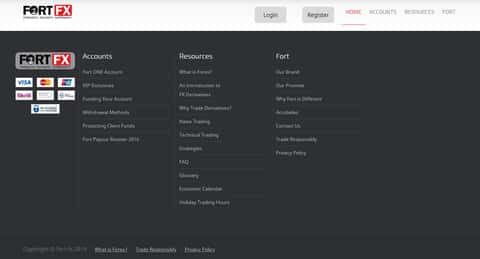 Завершается сайт жуликов Fort-FX типичным меню с картой сайта. В данном разделе аферисты Форт ФХ отошли от традиции и не размещали в нем предупреждения о рисках, в которых шулера Fort-FX отказываются от ответственности, а просто вынесли риски в отдельный раздел. На изображении ниже вы можете увидеть окончание сайта аферистов Форт ФХ.