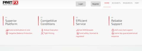 Далее на сайте подвального сайта жуликов Форт ФХ следует раздел, который жулики Fort-FX называют своими преимуществами. Но по его содержимому их даже трудно назвать необходимым минимумом, который должен быть у брокерской конторы. На изображении ниже вы можете увидеть очередной раздел подвального сайта аферистов сети интернет Форт ФХ.