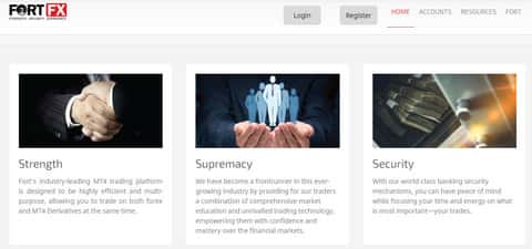 При посещении сайта мошенников Fort-FX вы можете увидеть пример очередного развода сети интернет, который поленился привнести что-то новое в данную мошенническую отрасль и просто скопировал дизайн у других брокерских контор. На изображении ниже вы можете увидеть внешний вид шапки сайта аферистов Форт ФХ с очередным враньем о надежности лохотрона.