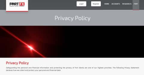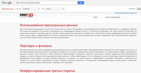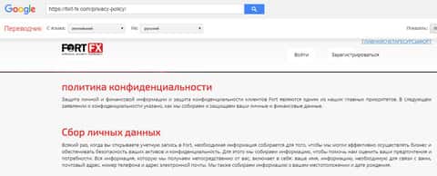 В отличии от клиентского соглашения аферисты Форт ФХ все же создали и разместили у себя на сайте некое подобие политики конфиденциальности, которое как и весь сайт представлено на английском языке и состоит из коротких текстов условий. На изображении, расположенном ниже, вы можете увидеть внешний вид политики конфиденциальности жуликов Fort-FX.