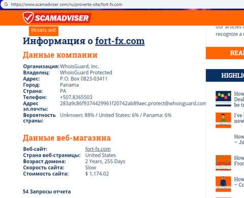 В связи с противозаконной и мошеннической деятельностью, реальные руководители жуликов Fort-FX предпочитают анонимность с целью избежания уголовной ответственности за многочисленные случаи развода. С этой же целью аферисты Форт ФХ скрывают реальное местоположение сервера своего сайта, о чем можно узнать с веб-площадки scamadviser com.