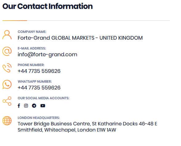 Связаться с мошенниками Forte-GrandFX вы можете одним из следующих способов: