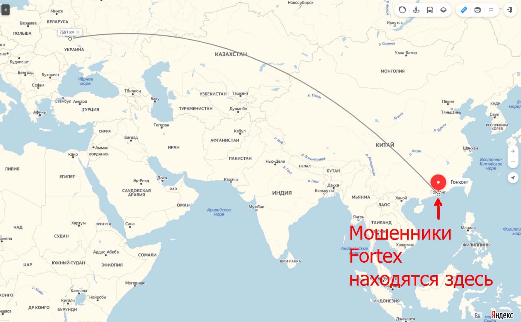 Дополнительным преимуществом для лохотрона Фортекс является факт их оффшорной регистрации, а именно: 99 Queen's Road Central, Suite 01-03, 66/F, Central, Hong Kong, что дает шулерам Fortex анонимность их счетов и владельцев. К тому же все суды пользователей с жульем Фортекс будут происходить на территории оффшора.