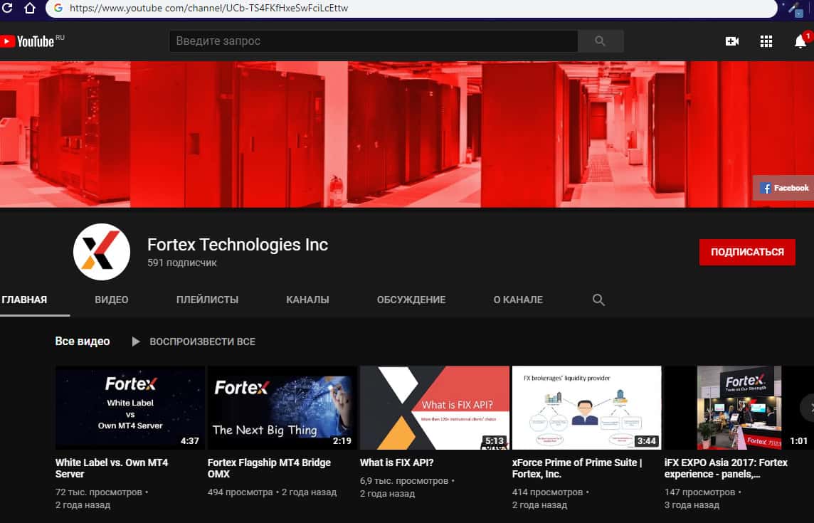 Для размещения различных мотивационных видеороликов с лапшой на уши наивной клиентуре аферисты Fortex обзавелись страницей в социальной сети YouTube, где у мошенников Фортекс имеется несколько сотен подписчиков. На изображении, расположенном ниже, вы можете увидеть страницу аферистов Fortex с Ютубе.
