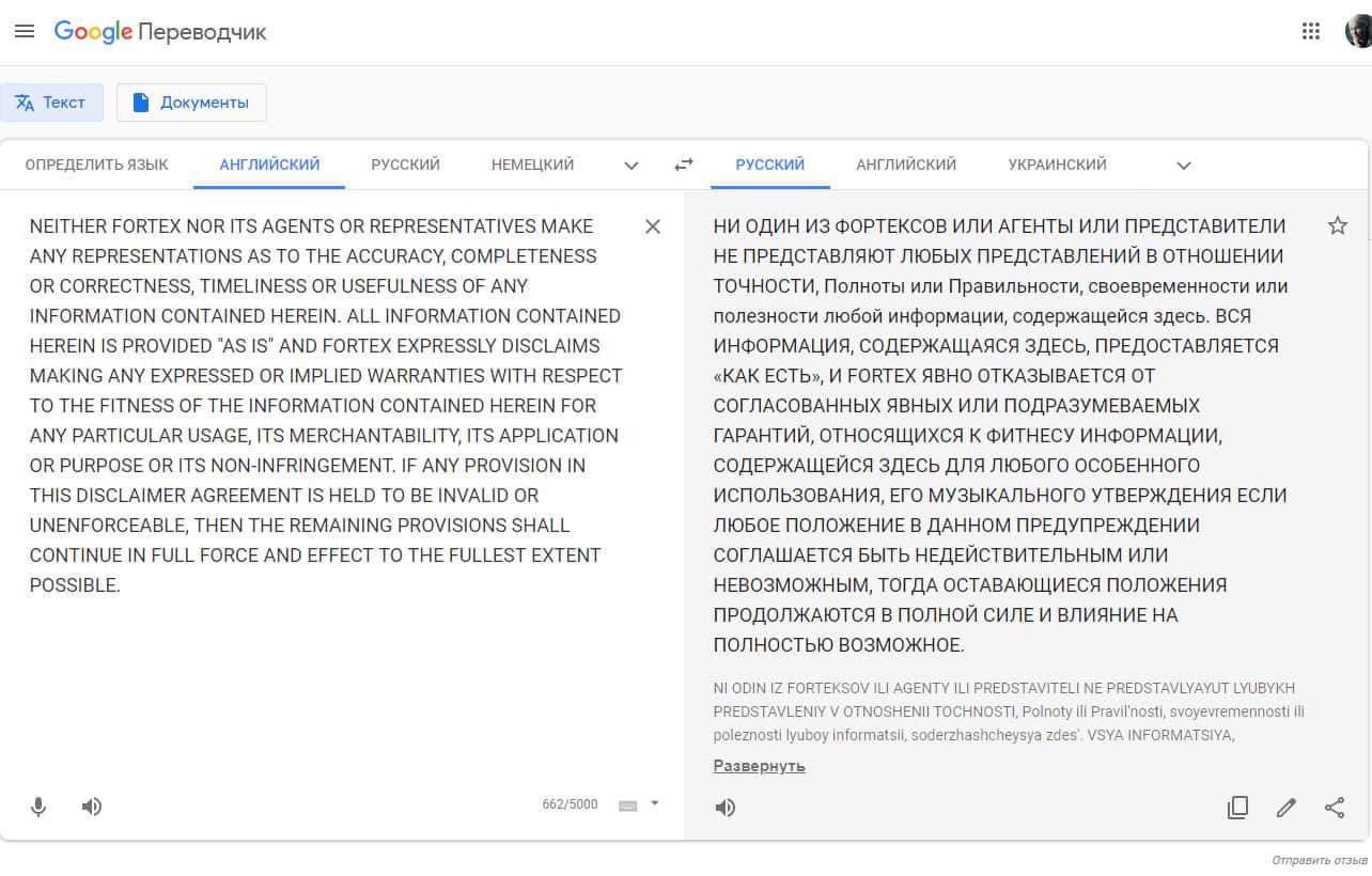 По итогу условия сотрудничества жулья Fortex ничего толкового из себя не представляют и содержат в себе исключительно отказ от ответственности, но никак не торговые условия. Соответственно можно сделать выводы о том, что мошенники Фортекс предоставляют свои услуги без каких-либо гарантий или же условий и могут легко кинуть клиентуру.