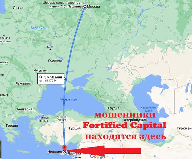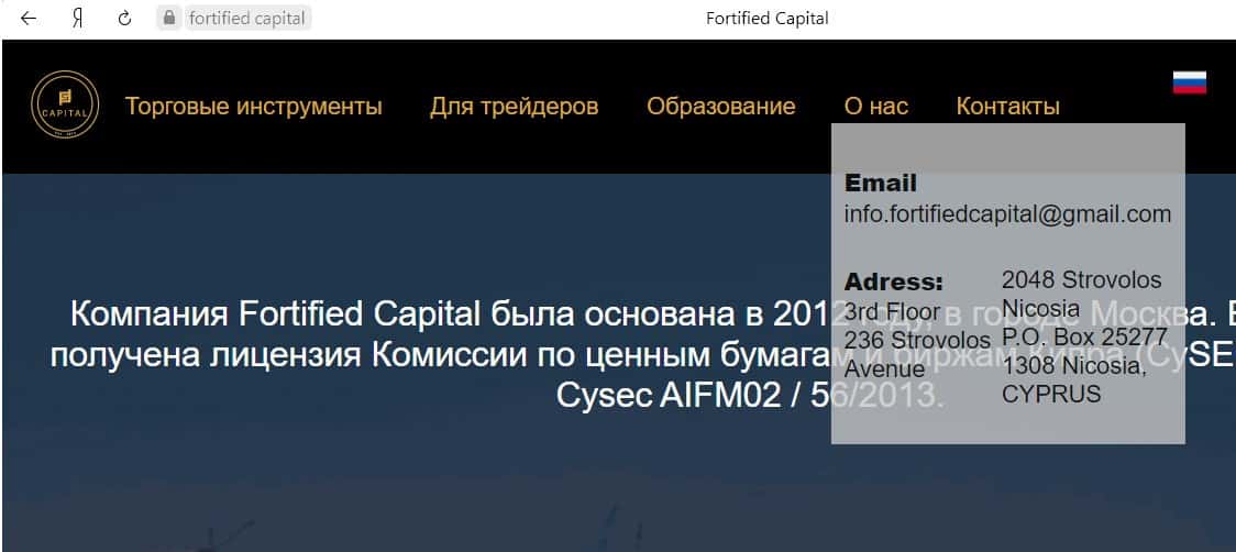Почти каждый интернет-брокер прикрывается оффшорными адресами. Не исключение и аферисты Fortified Capital, которые выбрали фейковый адрес на далеком Кипре.