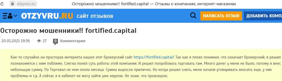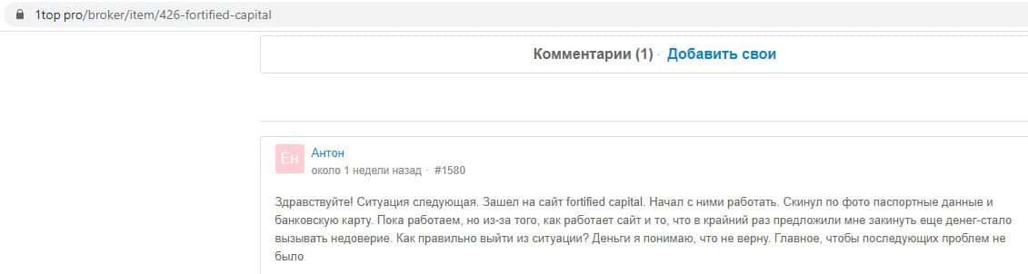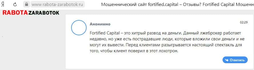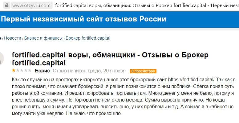 Интернет-отзывы, разоблачающие кидалово Фортифид Капитал