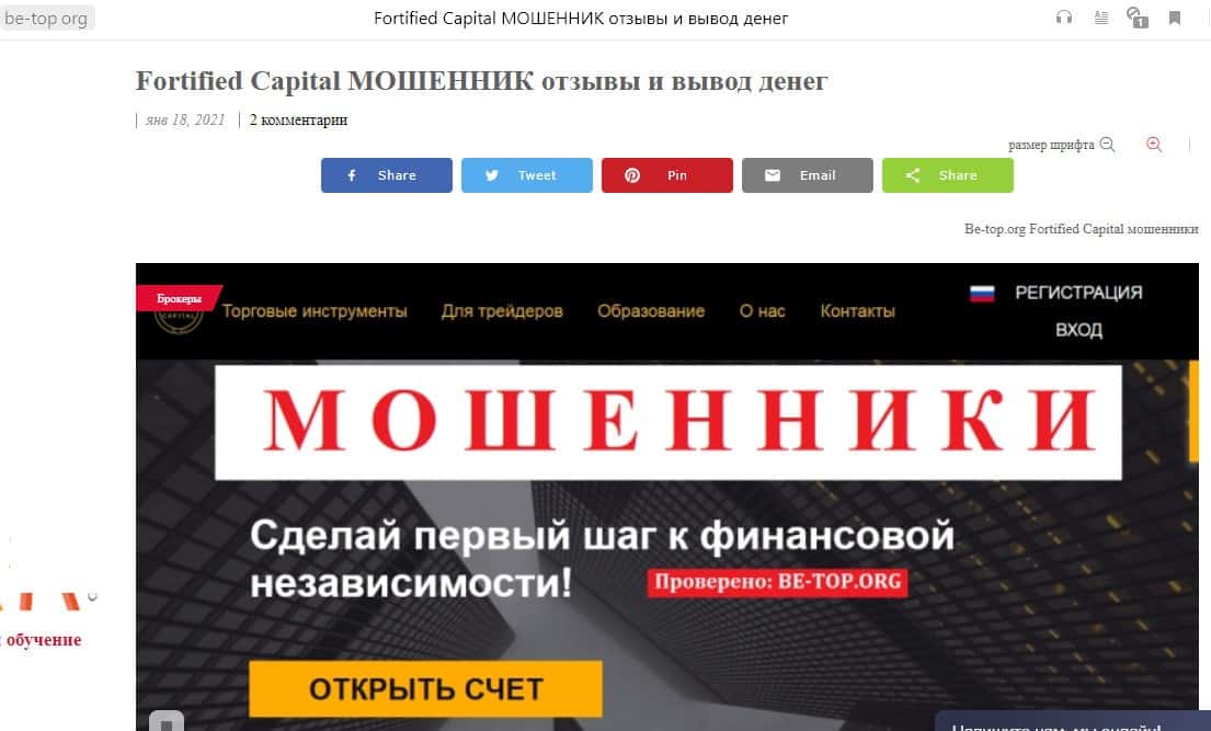 На сайте be-top.org вынесен однозначный вирдикт - Fortifid Capital МОШЕННИКИ!