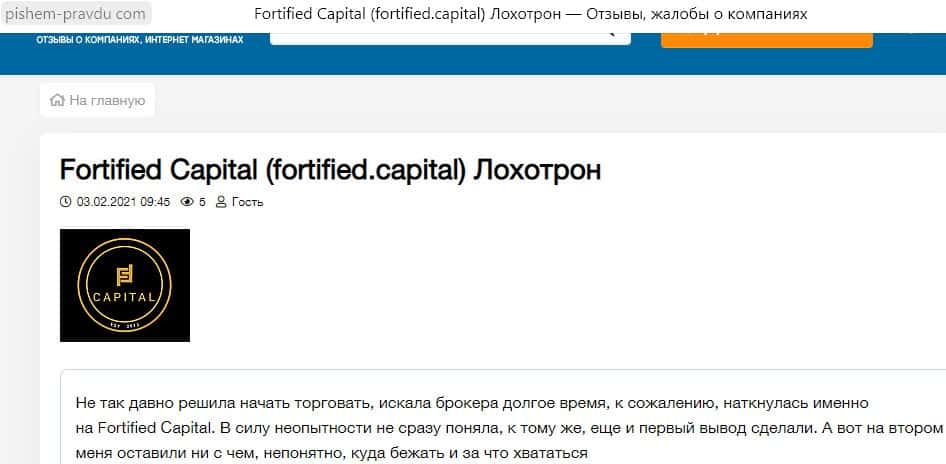 - Интернет-отзывы, разоблачающие кидалово Фортифид Капитал