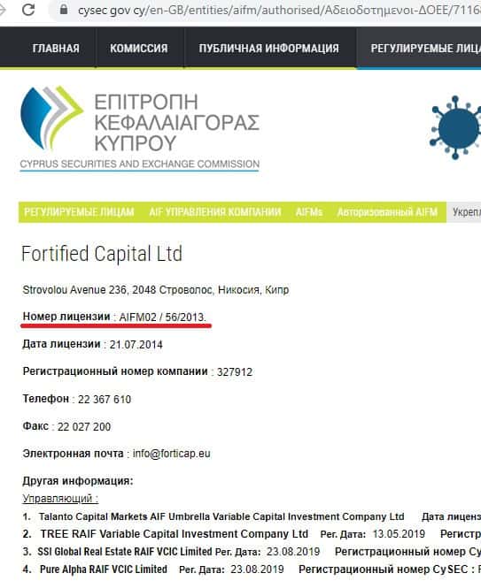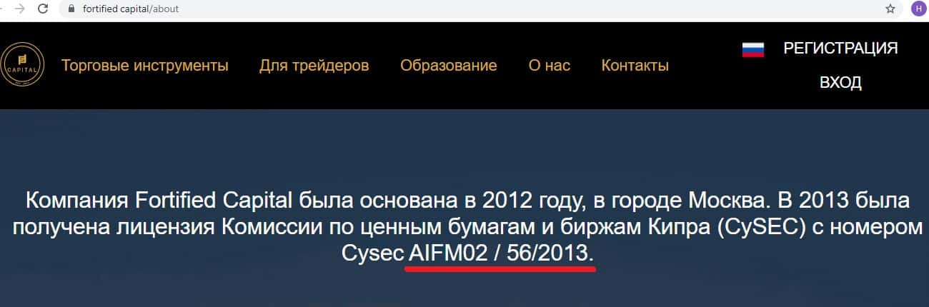 Сами мошенники наглым образом утверждают, что Fortifid Capital имеет лицензию кипрской комиссии по ценным бумагам и биржам (CySEC). И даже указывают якобы ее номер AIFM02/56/2013.