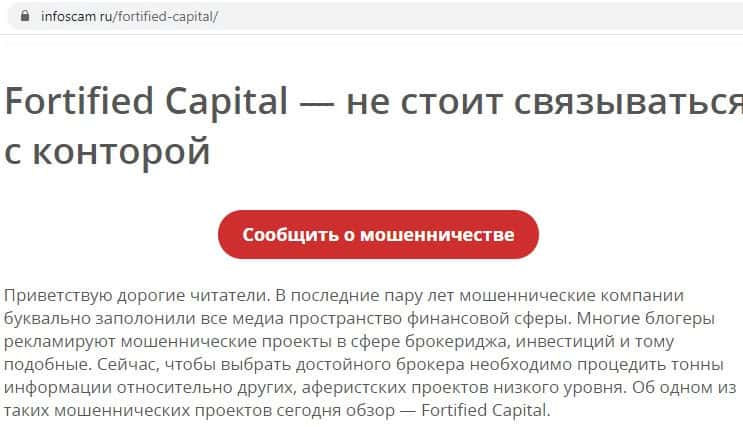 Не стоит связываться с Fortifid Capital - призывают с сайта infoscam ru.