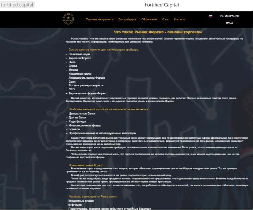 Уже при первом взгляде на страничку Фортифид Капитал даже неопытный трейдер понимает, что это лишь убогий скам-проект, который клепался на скорую руку начинающими фрилансерами.