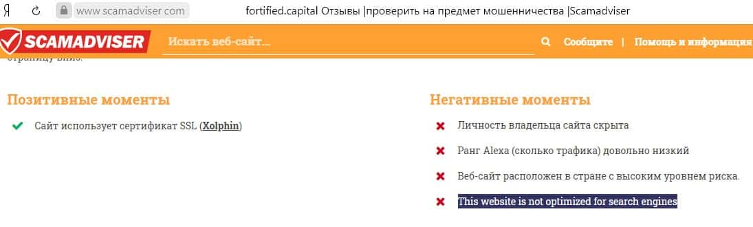 - Оценка Фортифид Капитал сайтом Scamamviser