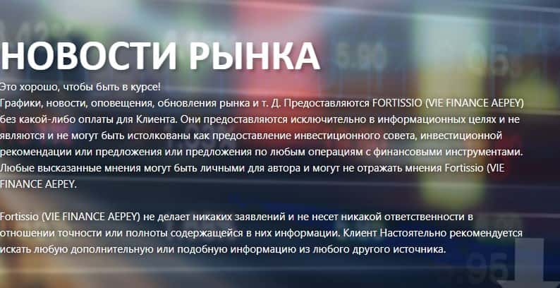 Непонятно для чего мошенники Fortissio создали отдельный раздел с подстроенной информацией и фальшивыми данными для трейдеров на чём можно будет заработать. На самом деле в этом разделе указаны новости в которые клиент должен вложить деньги и всё для того, чтобы после вложения сразу закрыть сайт и списать на неисправность.
