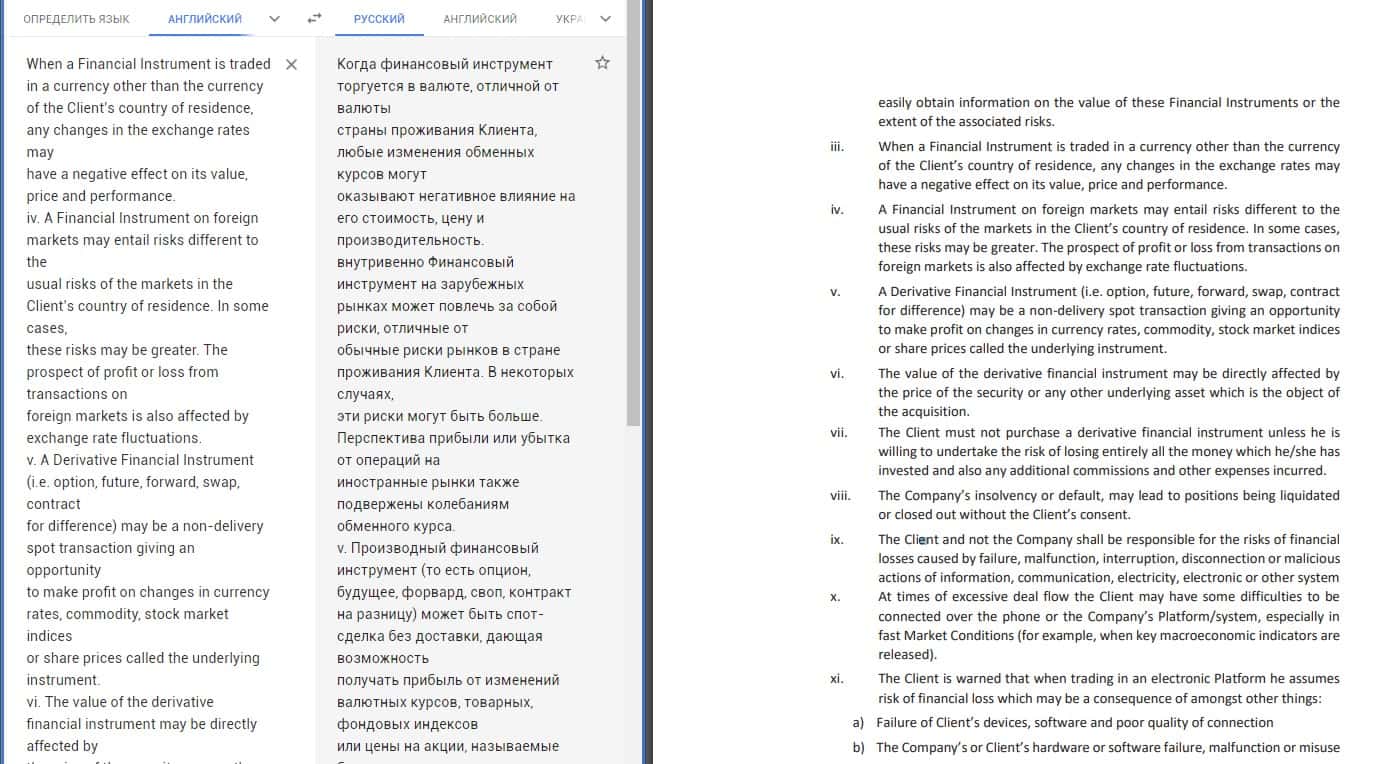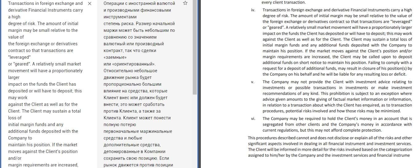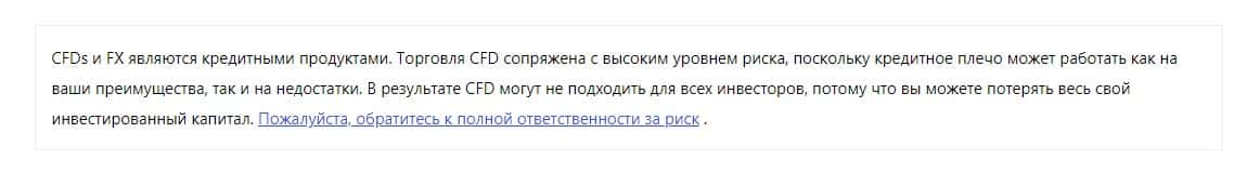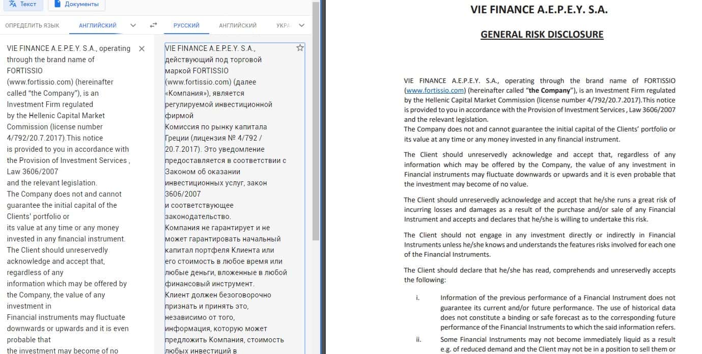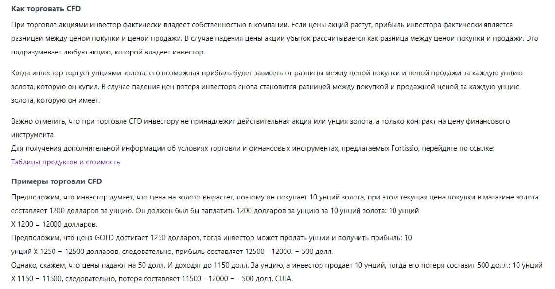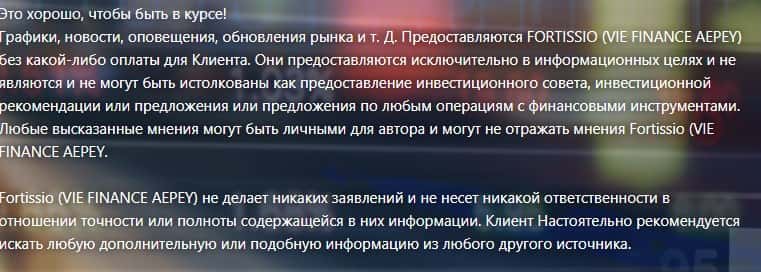 - Предупреждение о рисках торговли от самих аферистов Фортиссио