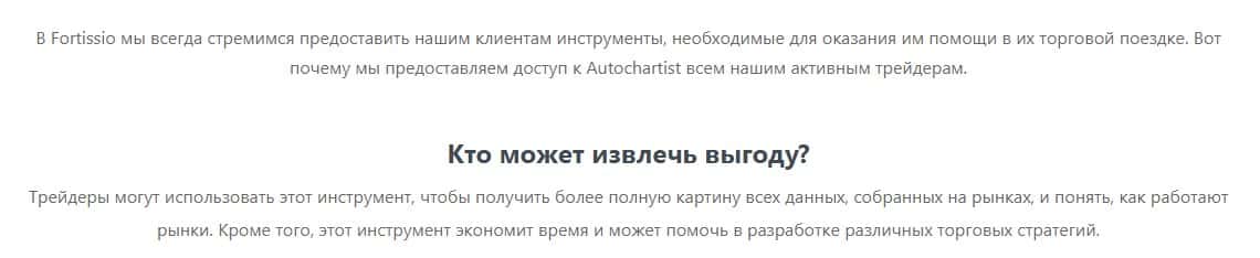 И снова видим самоуверенность и кучу преимуществ, за которыми ничего нет. Никакой нужной информации этот раздел не несёт так как новичкам он не нужен, а закостенелых трейдеров у лохотрона Fortissio, в связи с тем, что после первого пополнения вкладчика не просто кидают а в наглую забирают его деньги.
