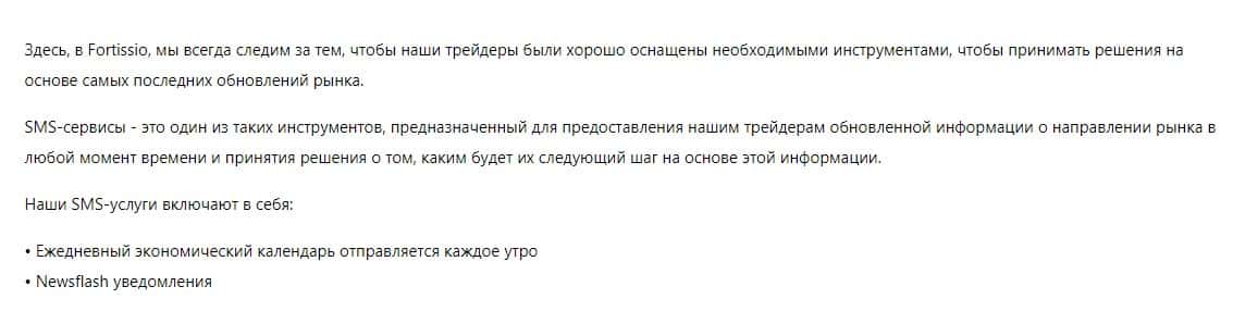 - Раздел с липовыми торговыми условиями аферистов Фортиссио